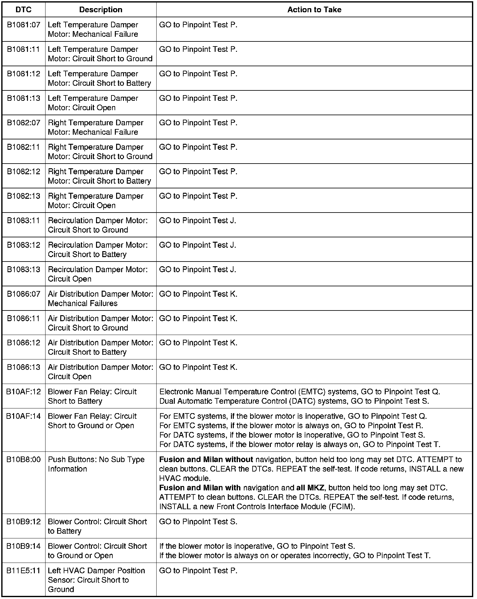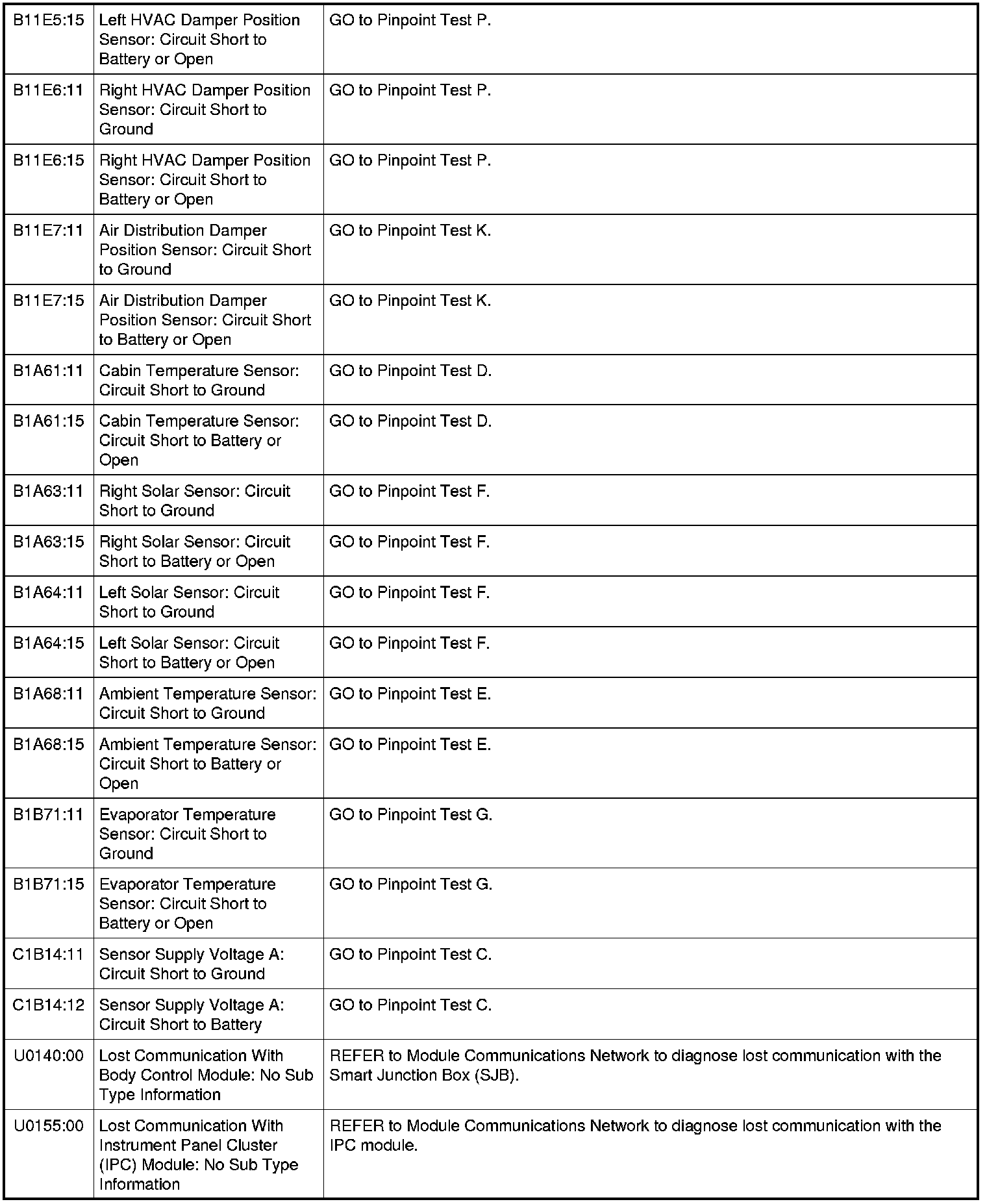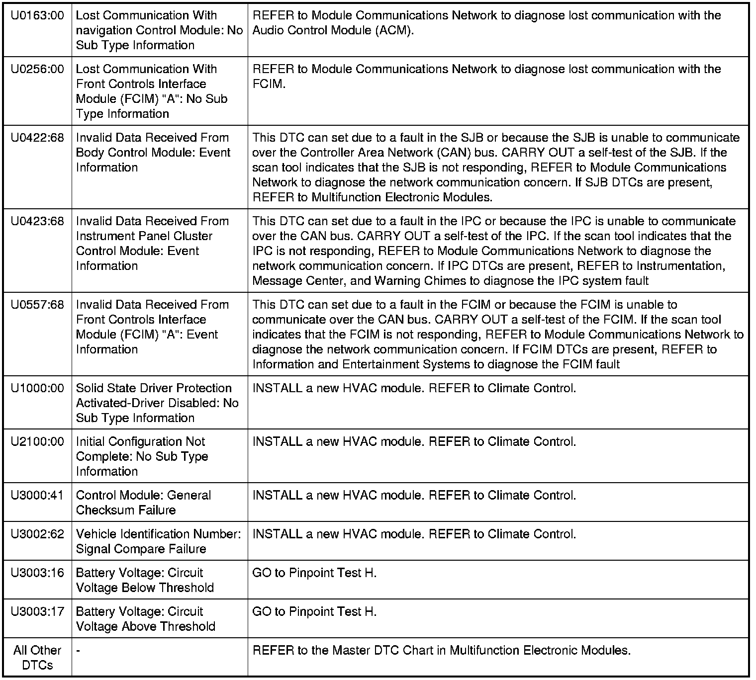 HVAC Module DTC Chart