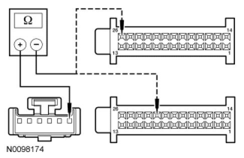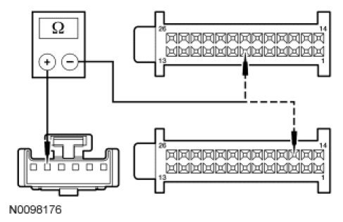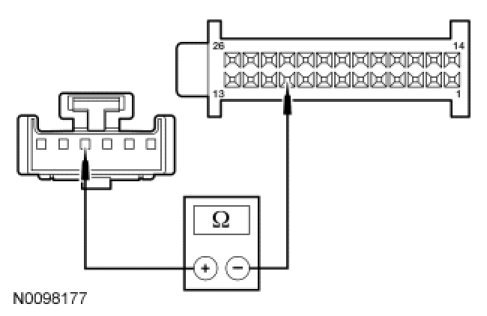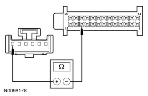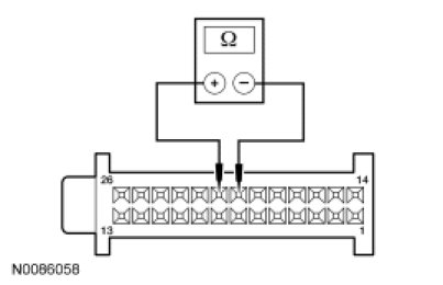 - Measure the resistance between HVAC module - DATC C2356b-25, circuit CH213 (BN/GN), harness side and HVAC module - DATC C2356b-26, circuit CH212 (BU/OG), harness side.