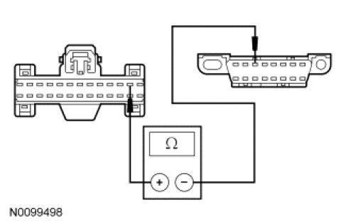- Measure the resistance between the SJB C2280b-38, circuit VDB07 (VT/OG), harness side and the DLC C251-11, circuit VDB07 (VT/OG), harness side.