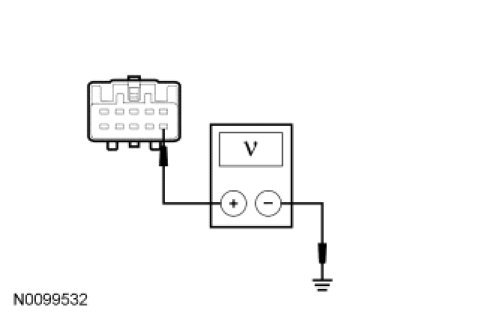- Measure the voltage between the in-line ILCM C2238-10, circuit SBP14 (BN/RD), harness side (male) and ground.