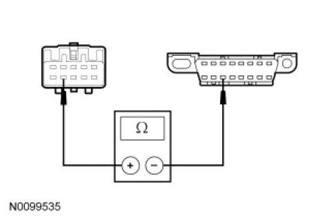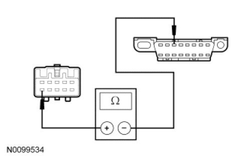 - Measure the resistance between the in-line ILCM C2238-7, circuit VDB07 (VT/OG), harness side (male) and the DLC C251-11, circuit VDB07 (VT/OG), harness side.