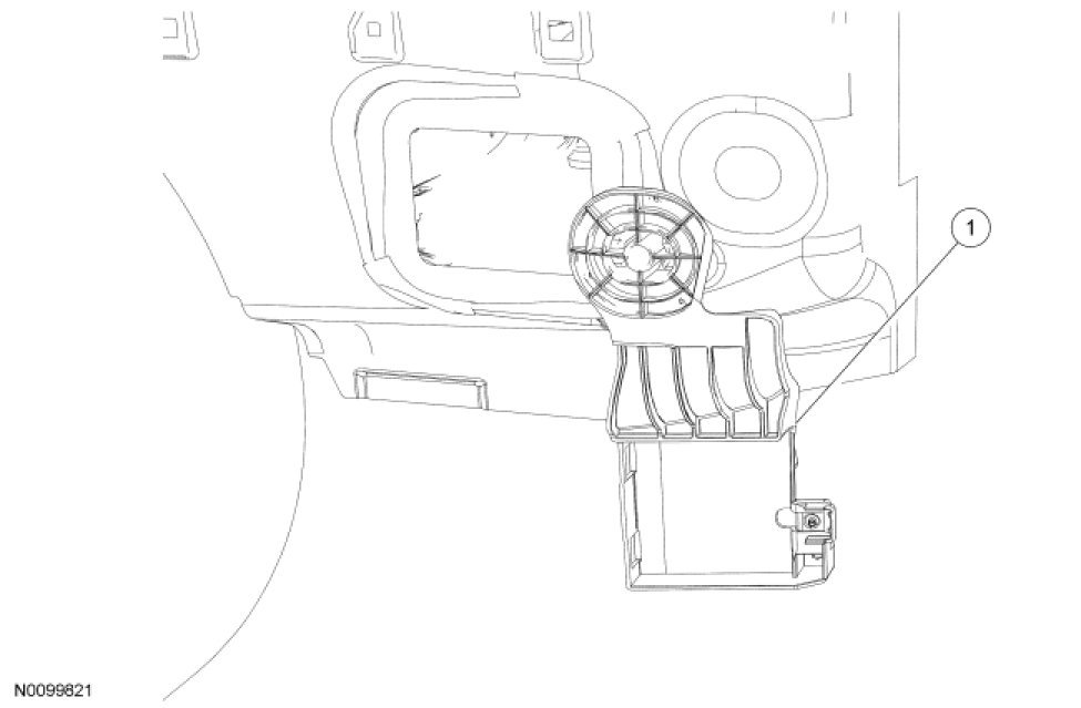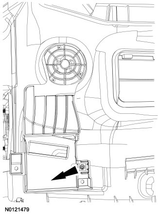 Using a suitable tool, such as pliers, squeeze the retaining tabs of the SOD-L/SOD-R bracket, located in the luggage compartment behind the side carpet panel, and remove the SOD-L/SOD-R bracket.