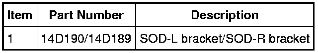 9. NOTE: The SOD-L/SOD-R bracket has a strip of adhesive tape that holding it to the vehicle.
