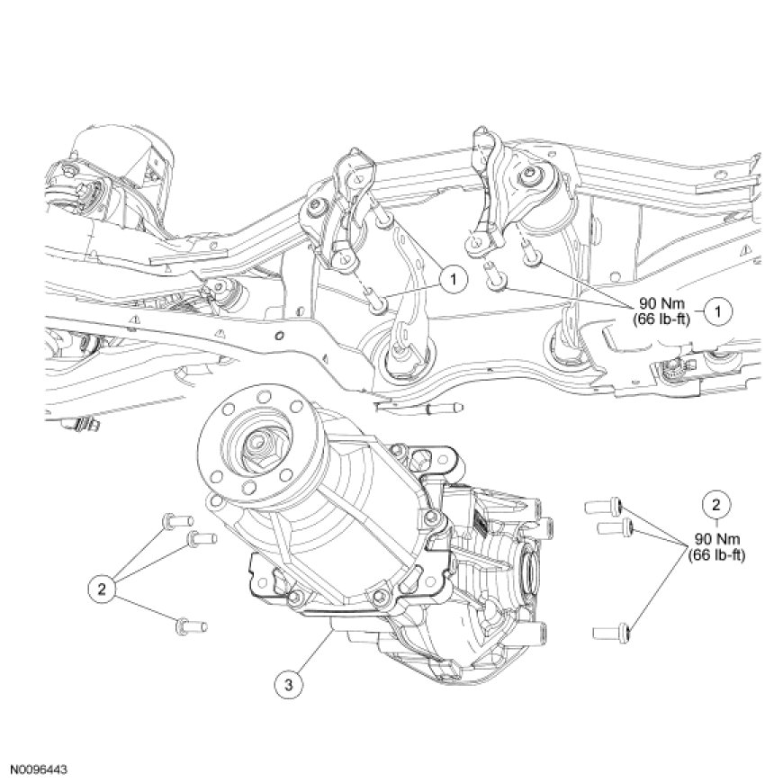 - To install, tighten to 90 Nm (66 lb-ft).