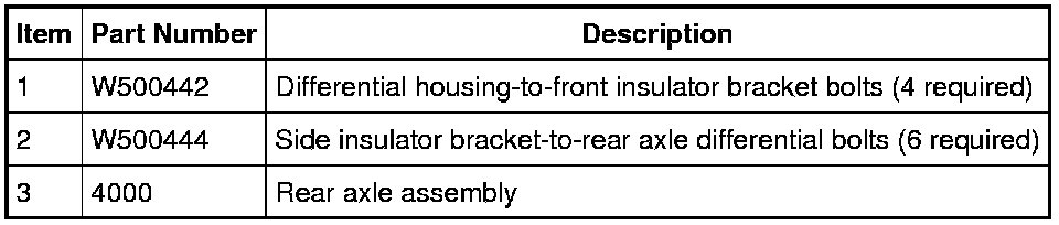 5. Remove the 3 RH side insulator bracket-to-rear axle differential bolts.