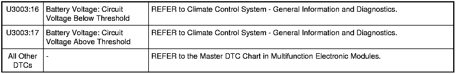 NOTE: Some PCM DTCs may inhibit A/C operation. If any PCM DTCs are retrieved, diagnose those first. Refer to the PCM DTC Chart. PCM DTC Chart