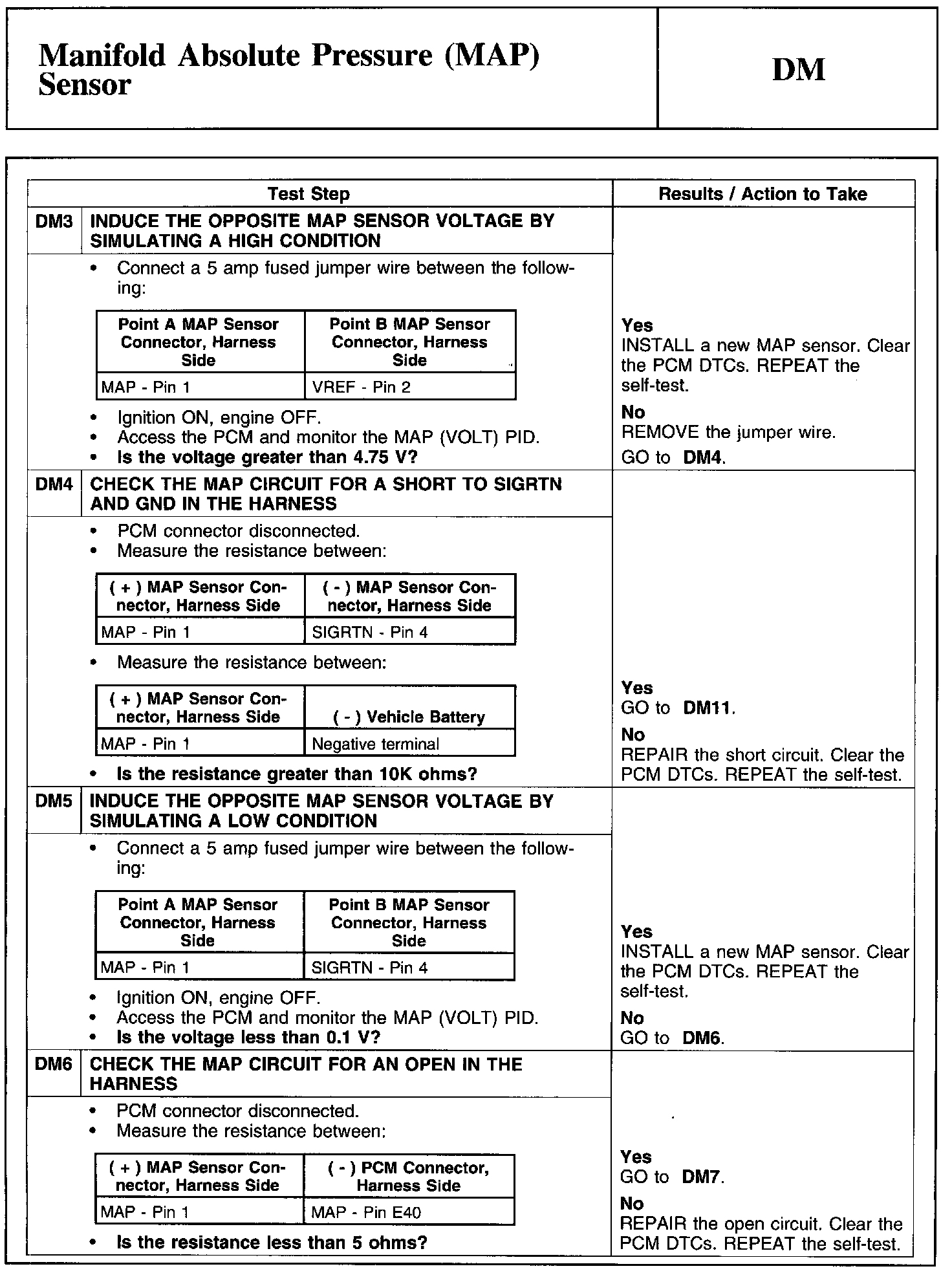 Test DM: Manifold Absolute Pressure (MAP) Sensor