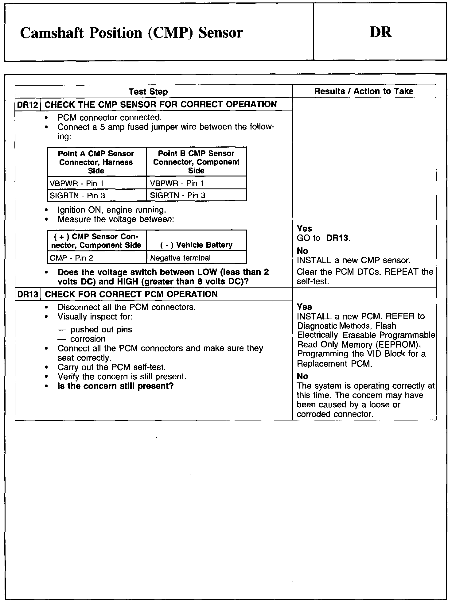PINPOINT TEST DR: CAMSHAFT POSITION (CMP) SENSOR