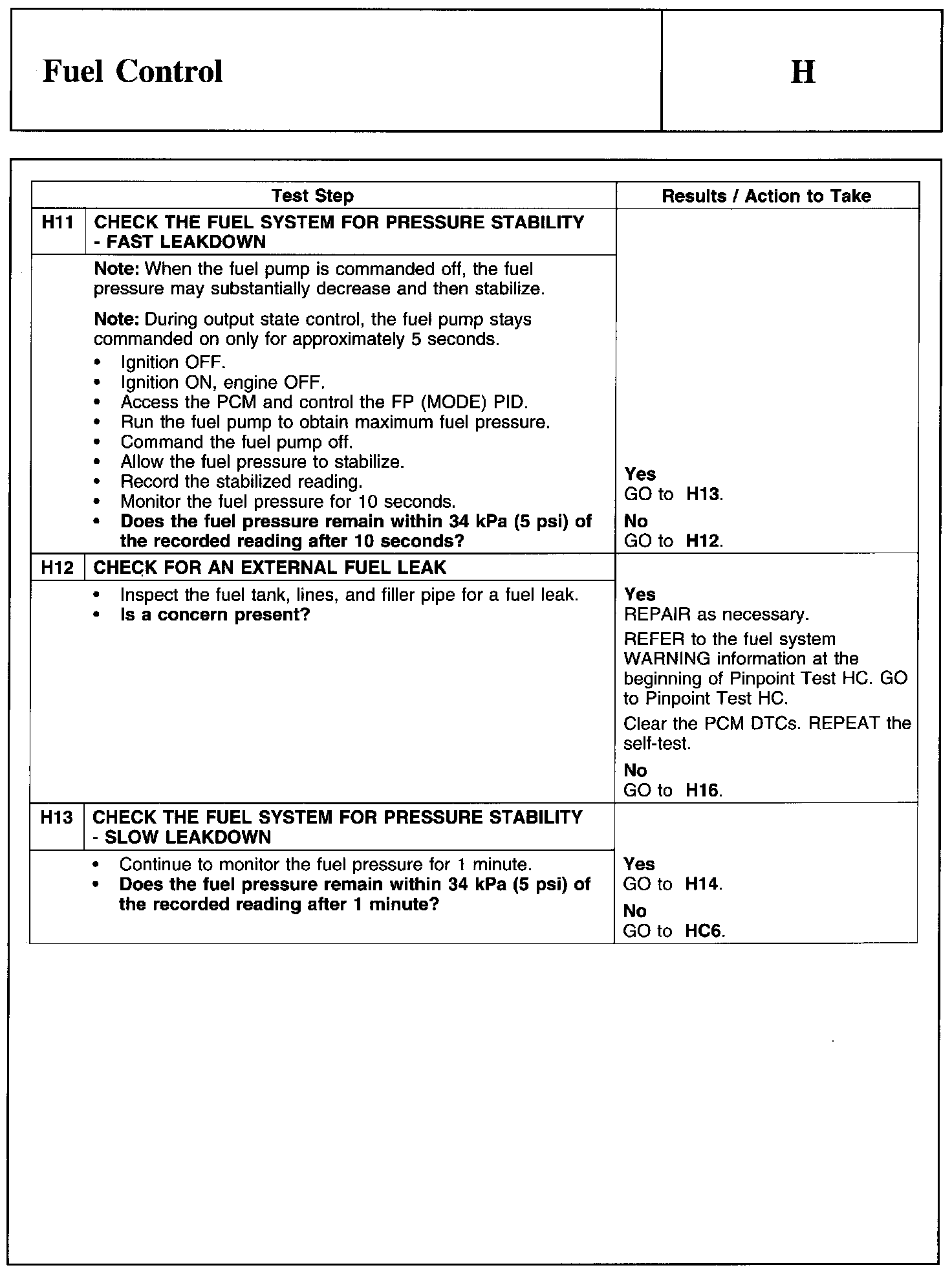 Test H: Fuel Control