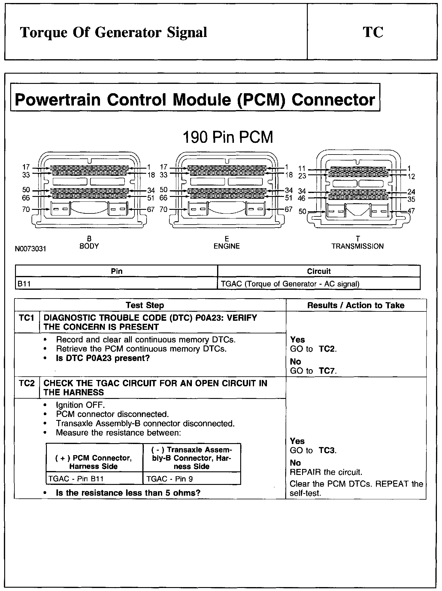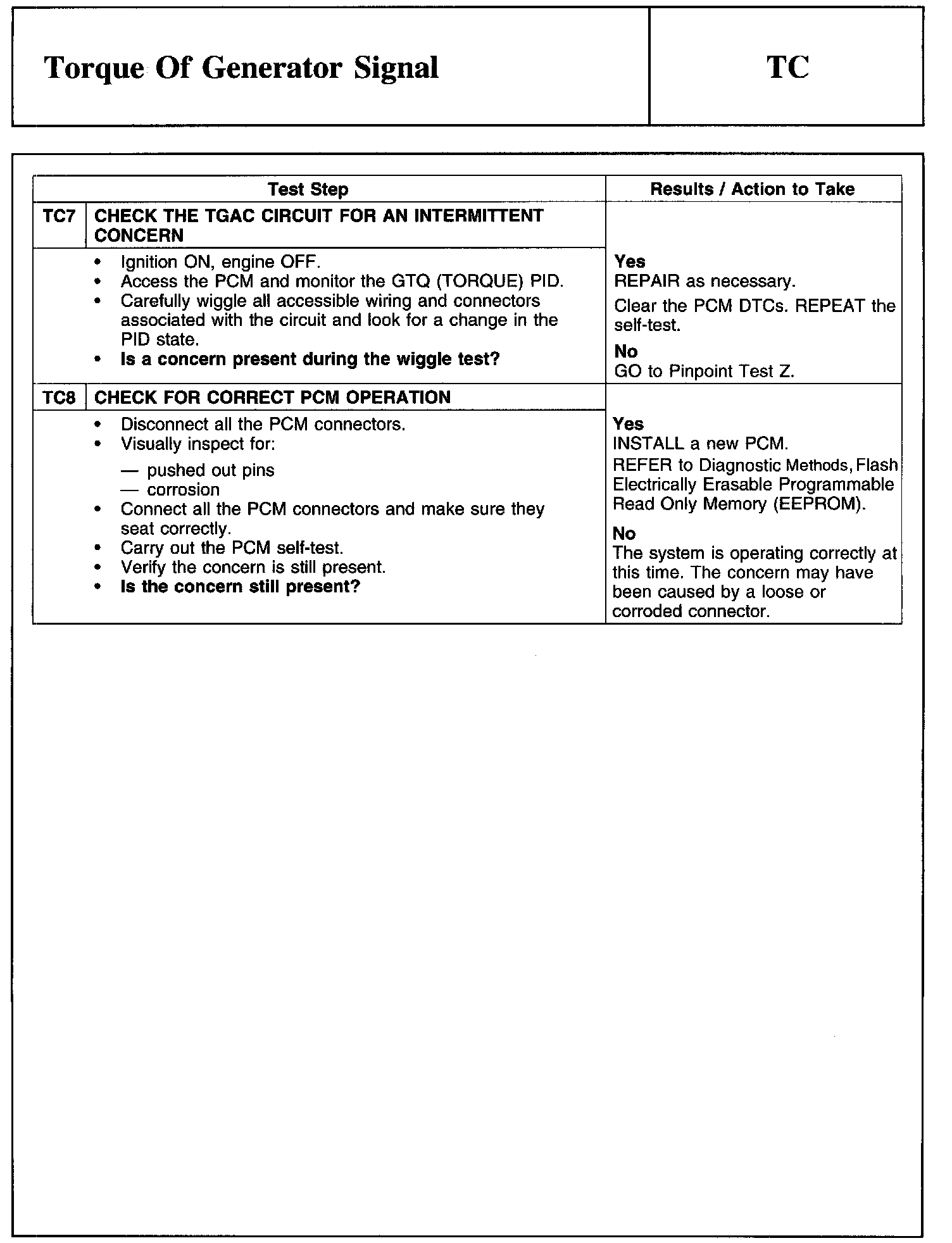 PINPOINT TEST TC: TORQUE OF GENERATOR SIGNAL