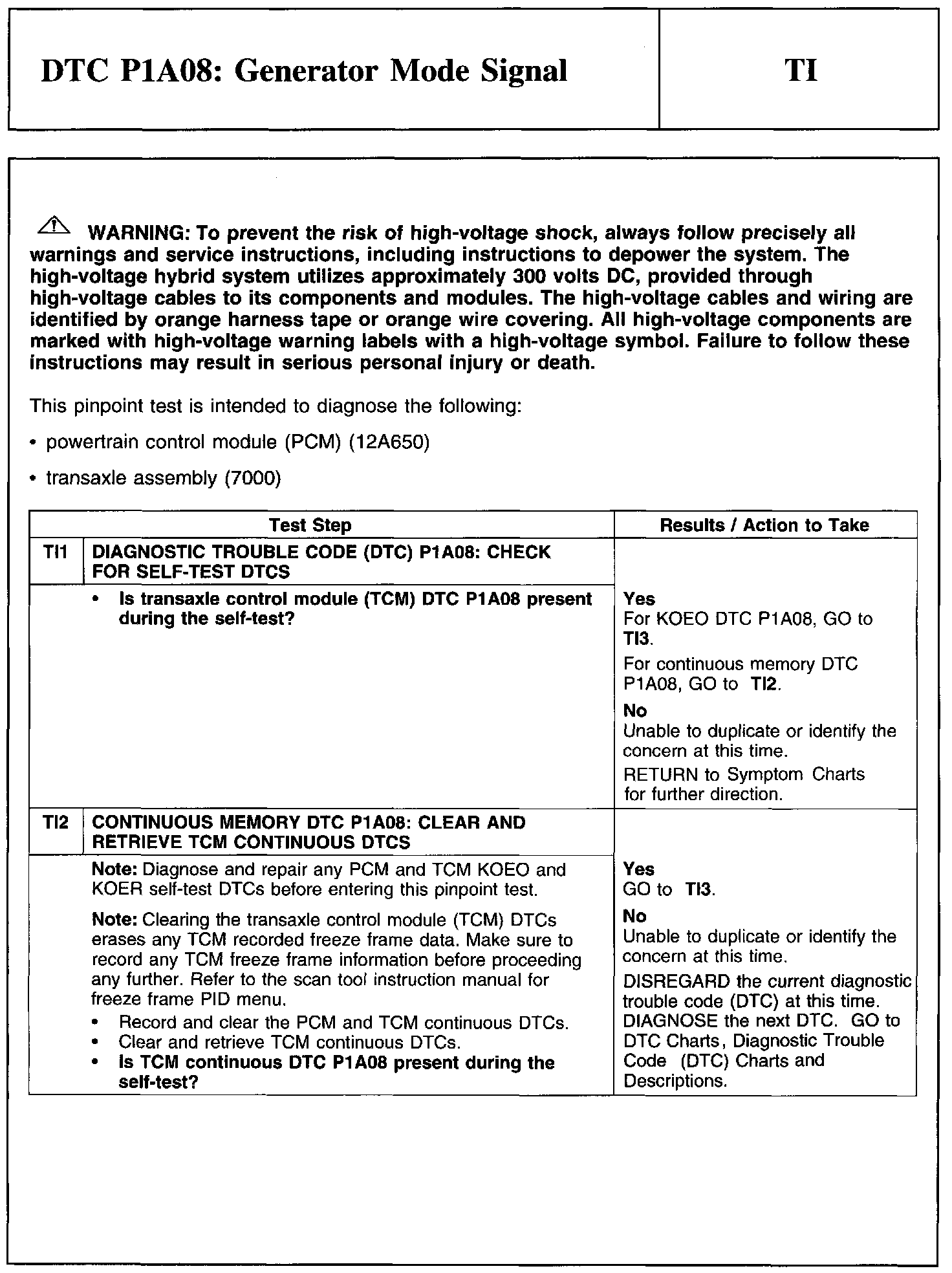 PINPOINT TEST TI: DTC P1A08: GENERATOR MODE SIGNAL