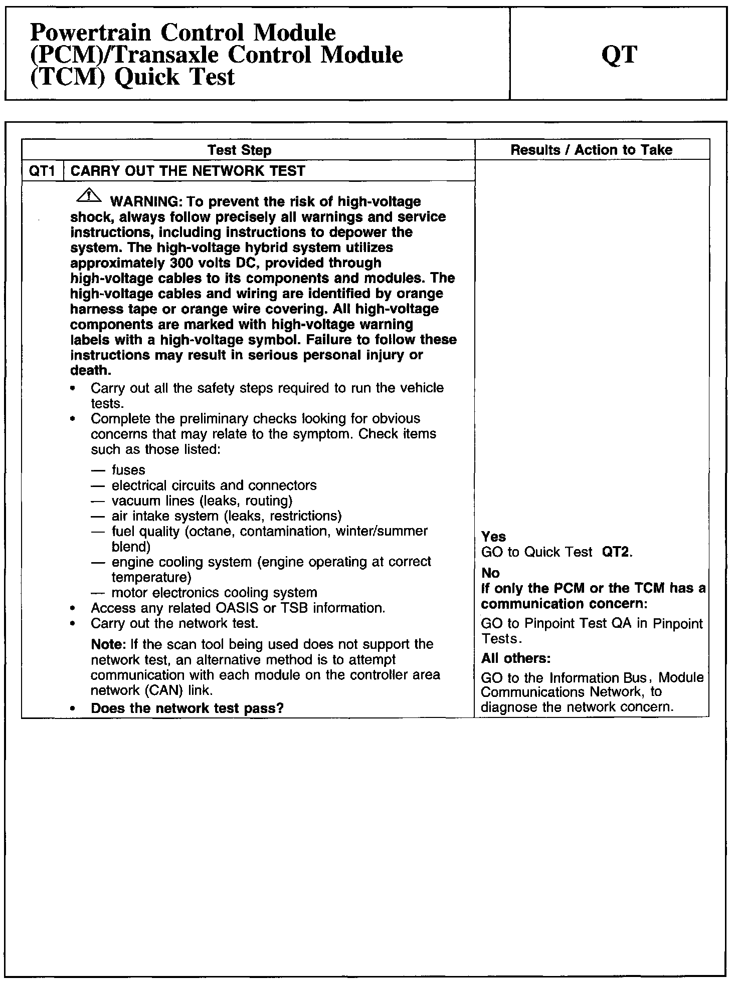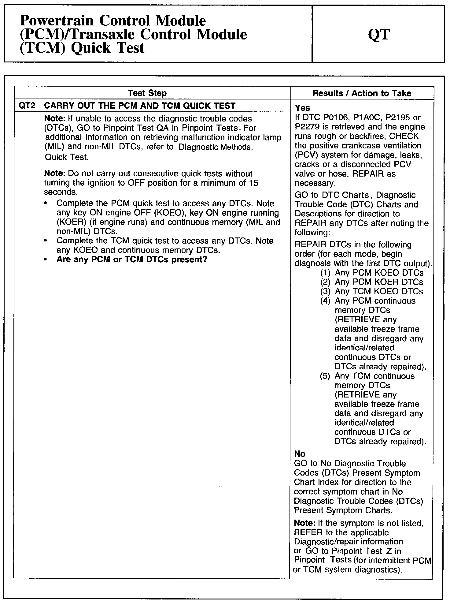 QT: Powertrain Control Module (PCM)/Transaxle Control Module (TCM) Quick Test