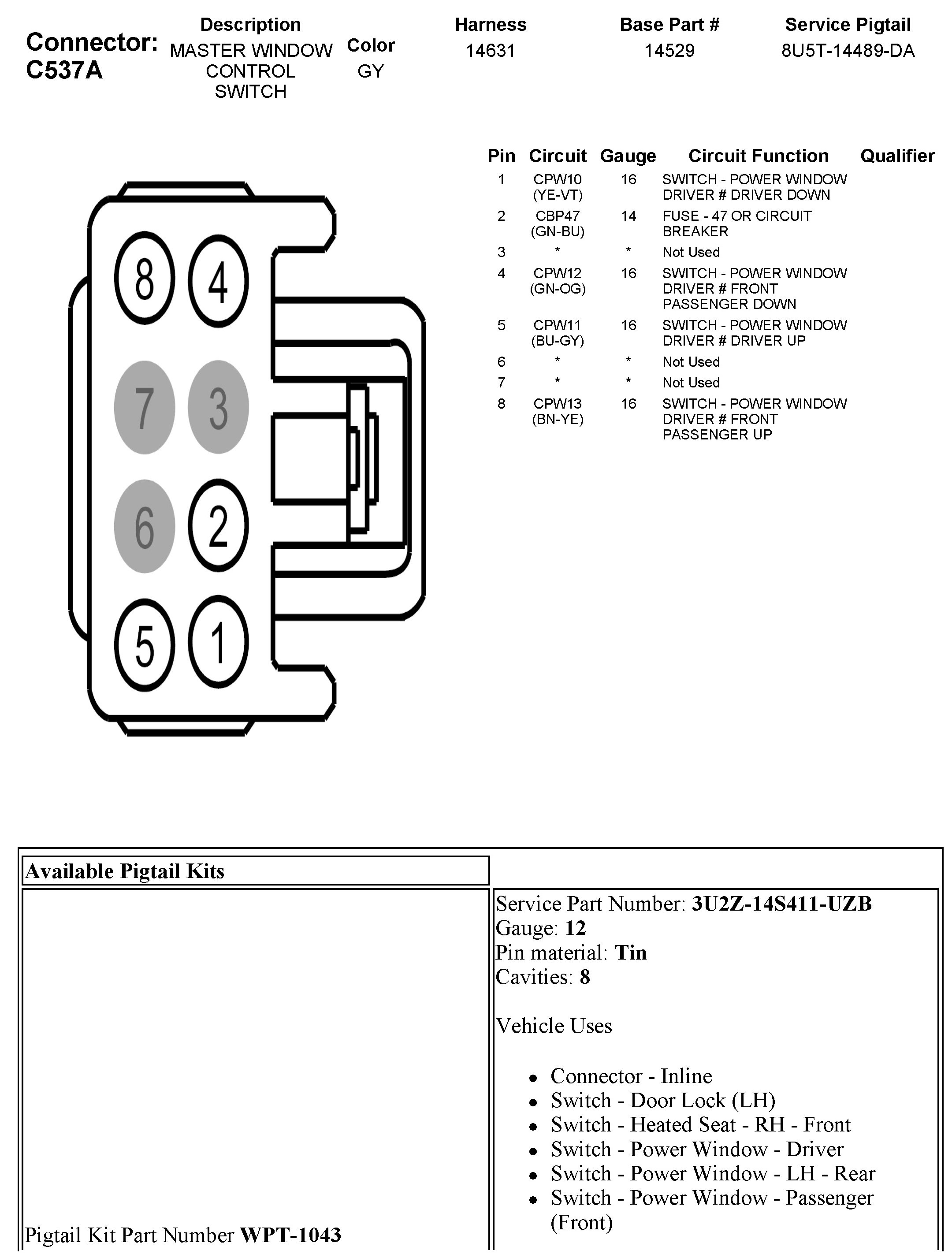 C537A Master Window Control Switch