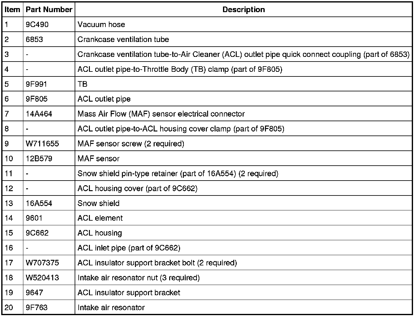 Intake Air System Components - Exploded View