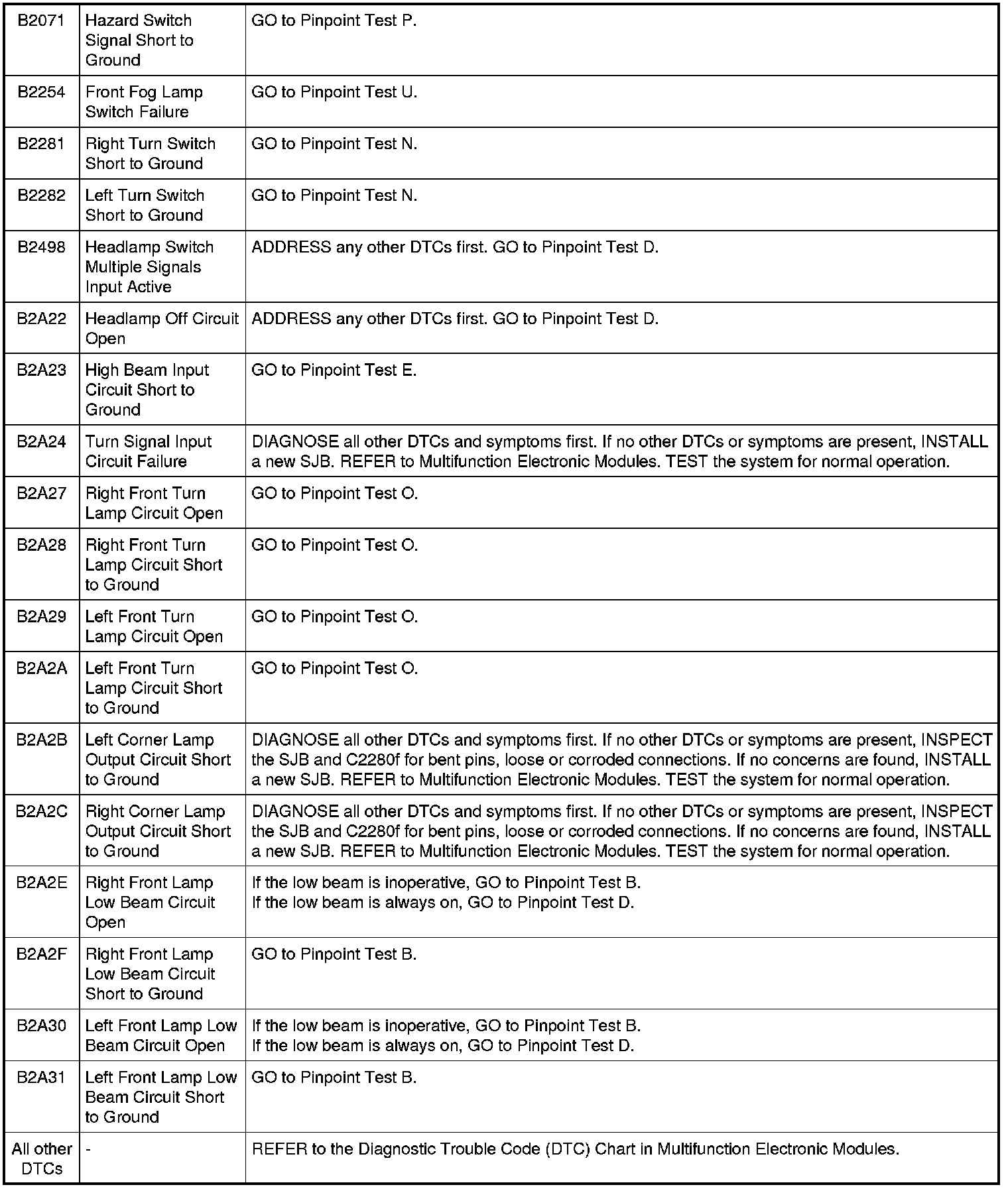 Smart Junction Box (SJB) DTC Chart