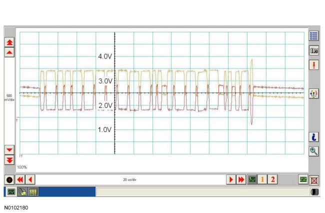 Successful communication of a message can usually be identified by the slight spike at the end of a message transmission. Any signals that are significantly different than the normal CAN waveform may cause network DTCs (U-codes) to set or may cause a complete network outage.