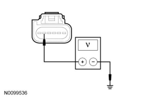 - Measure the voltage between the SOD-R C4229-5, circuit CBP35 (YE/GY), harness side and ground.