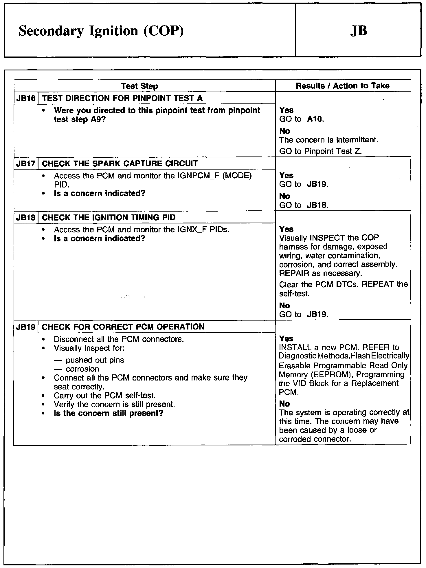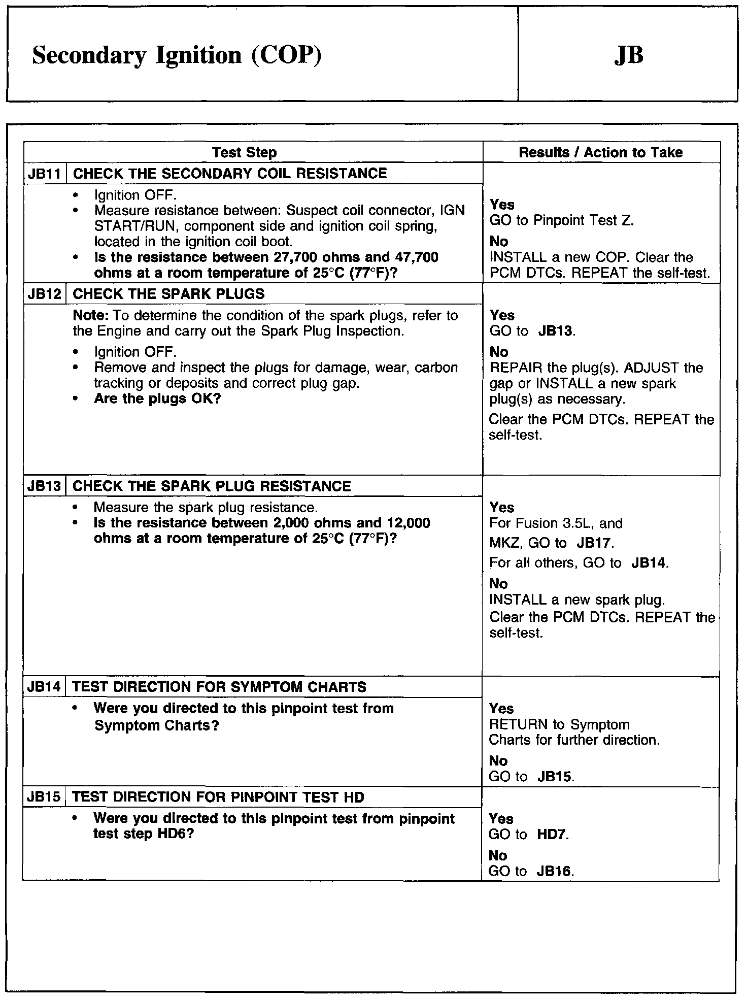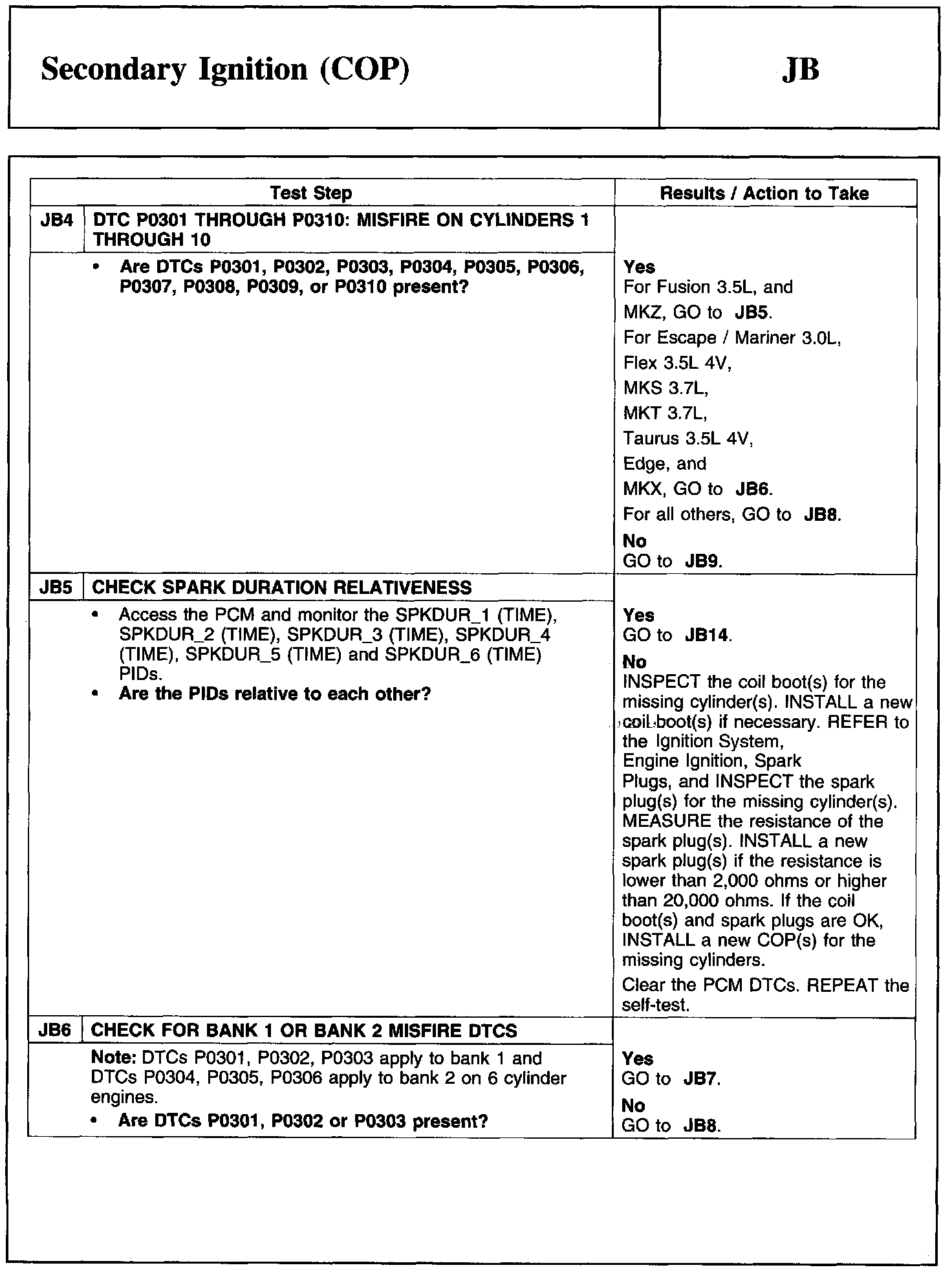 PINPOINT TEST JB: SECONDARY IGNITION (COP)