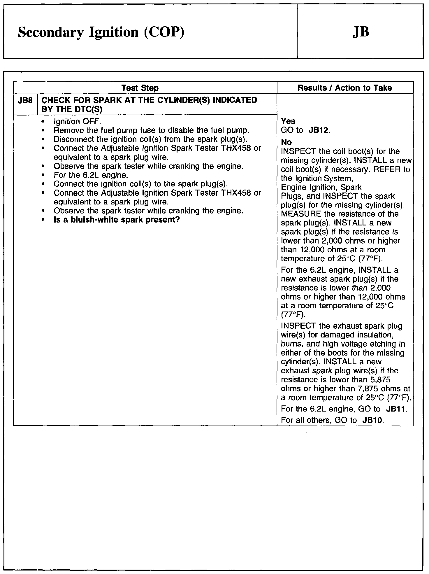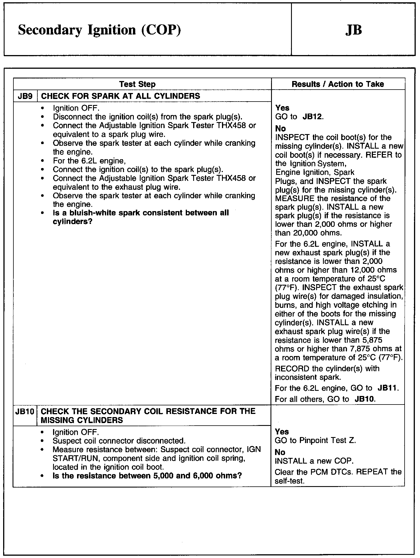Test JB: Secondary Ignition (COP)