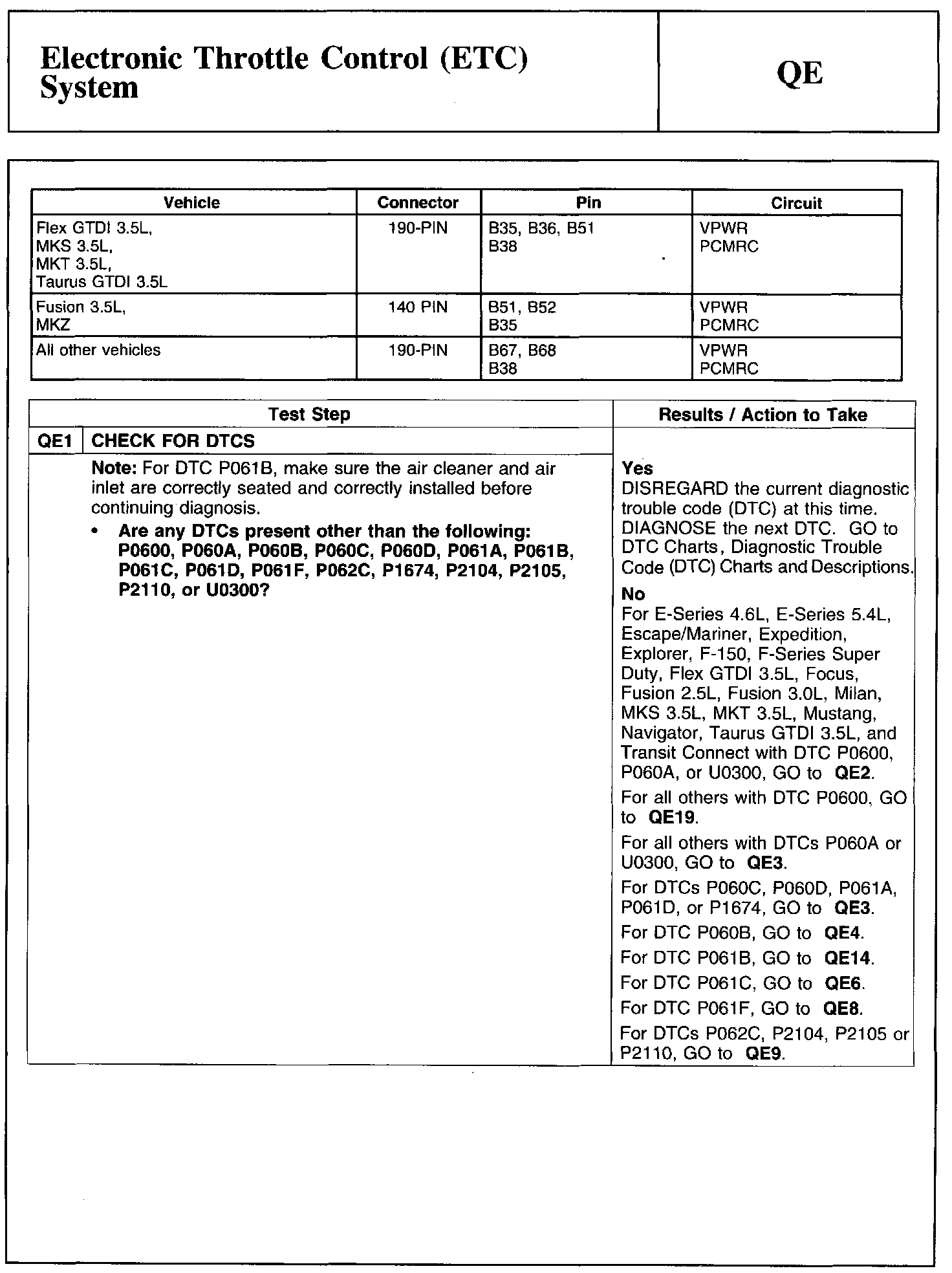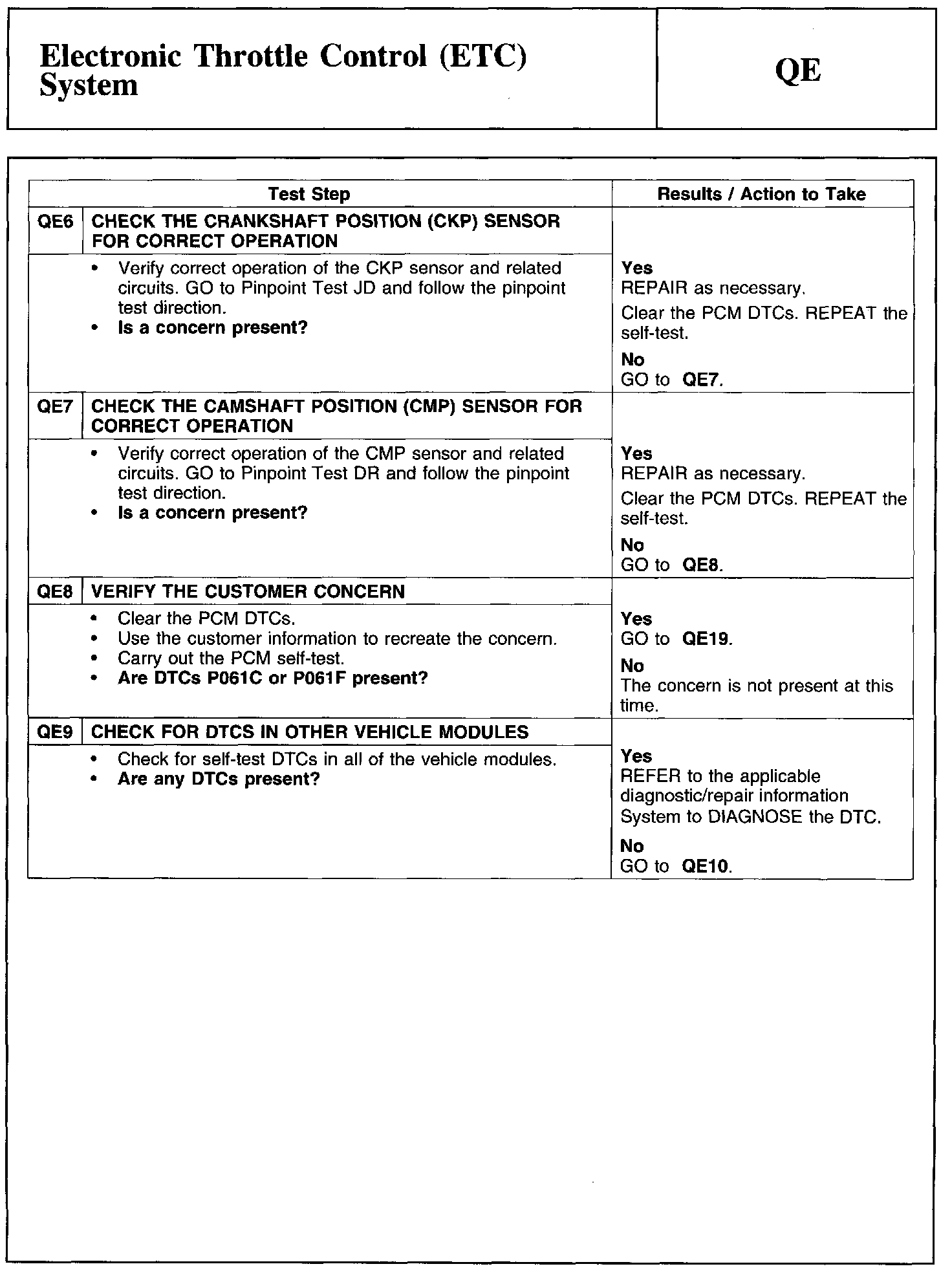 PINPOINT TEST QE: ELECTRONIC THROTTLE CONTROL (ETC) SYSTEM