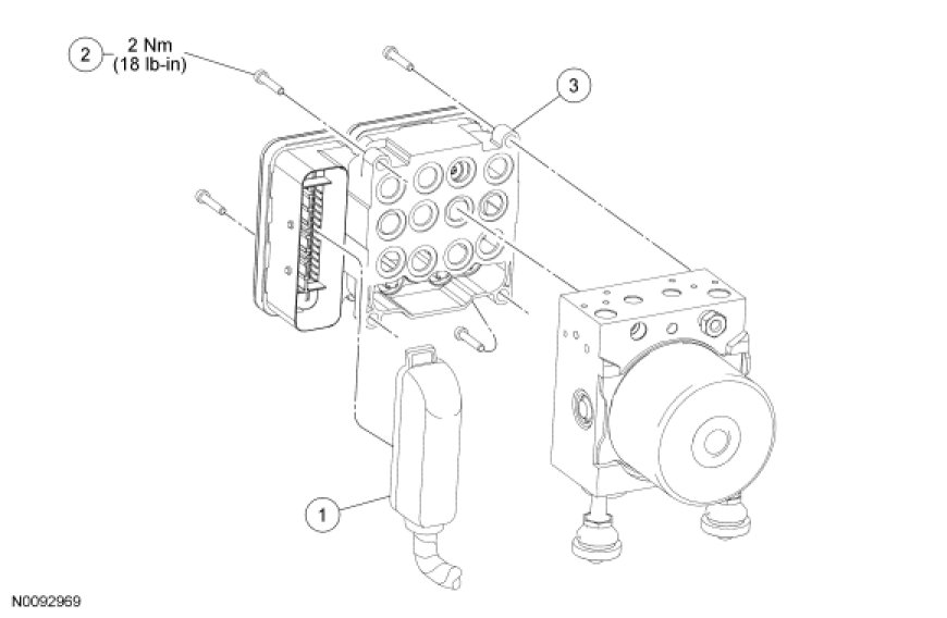 9. NOTE: Visually inspect the ABS module terminals for damage before installation.