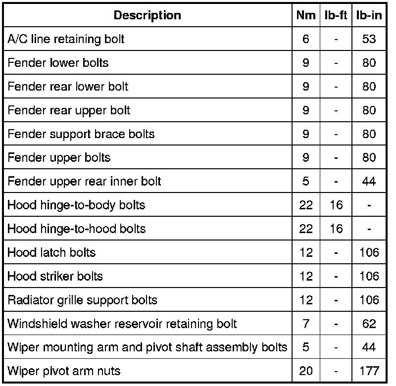 Torque Specifications