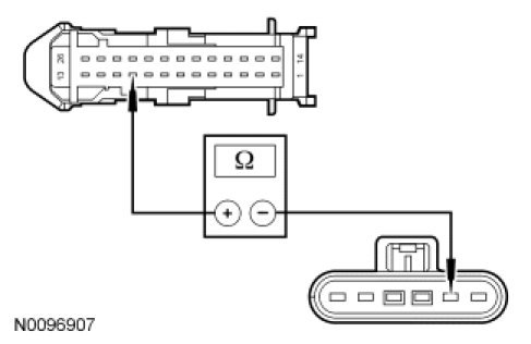 - Measure the resistance between SJB C2280C-10, circuit CPW01 (BN/BU), harness side and ground.