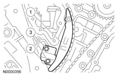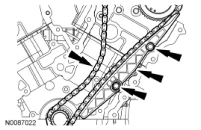 8. Install the LH timing chain tensioner arm and the LH timing chain tensioner.