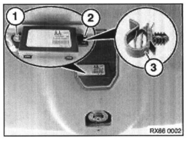 For Production Date 07/2004 on: the control unit for radio remote control is integrated in the interior rearview mirror, for more information please refer to: Removing and Installing or Replacing Interior Rearview Mirror