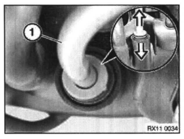 Disconnect servo pipe from inlet manifold. Push circular ring down to release pipe (1).