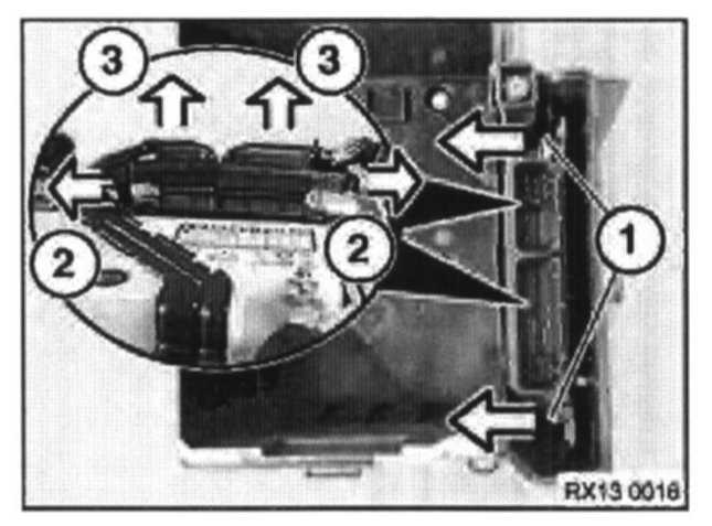 Move EMS2000 retaining clips (1) and lift EMS2000 control unit upwards.