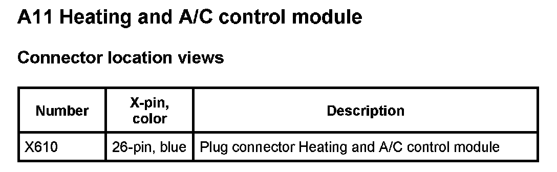 A11 Heating And A/C Control Module ((W10 Engine Up to 03/02) or (As of 03/02 Up to 09/05)):
