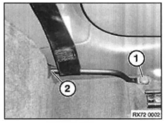 Remove Torx screw (1) securing seat belt slider bar to body.