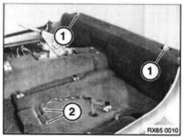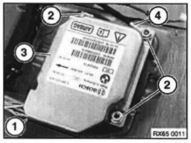 Fold back carpet (over handbrake) to gain sufficient access to airbag control unit connector and fixings.
