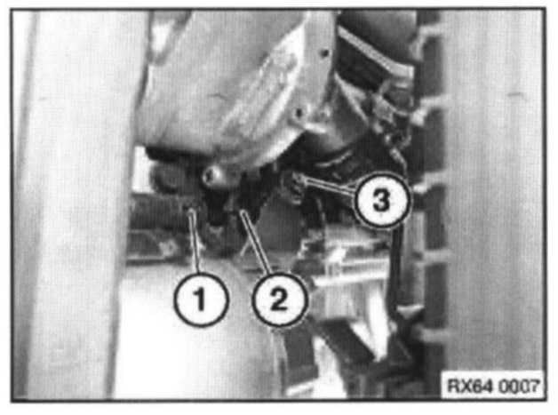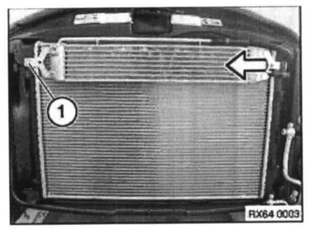 Release radiator from lower mounting brackets to gain access to A/C compressor and pipes.