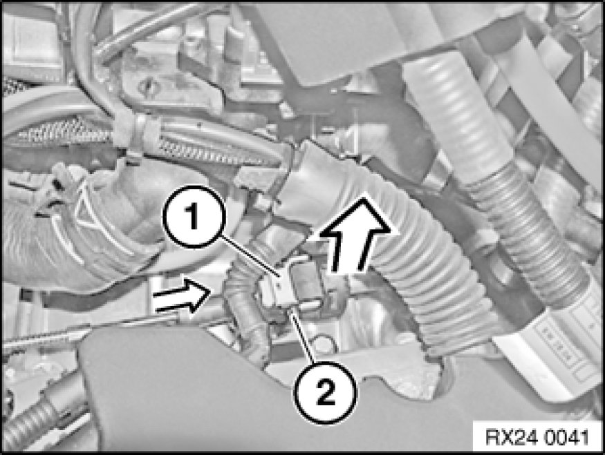 Press retaining clip (1) together and remove cable from fixture (2).