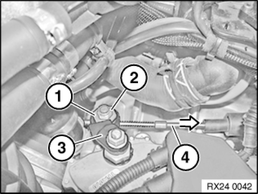 - Press cable (4) in direction of arrow, then release again