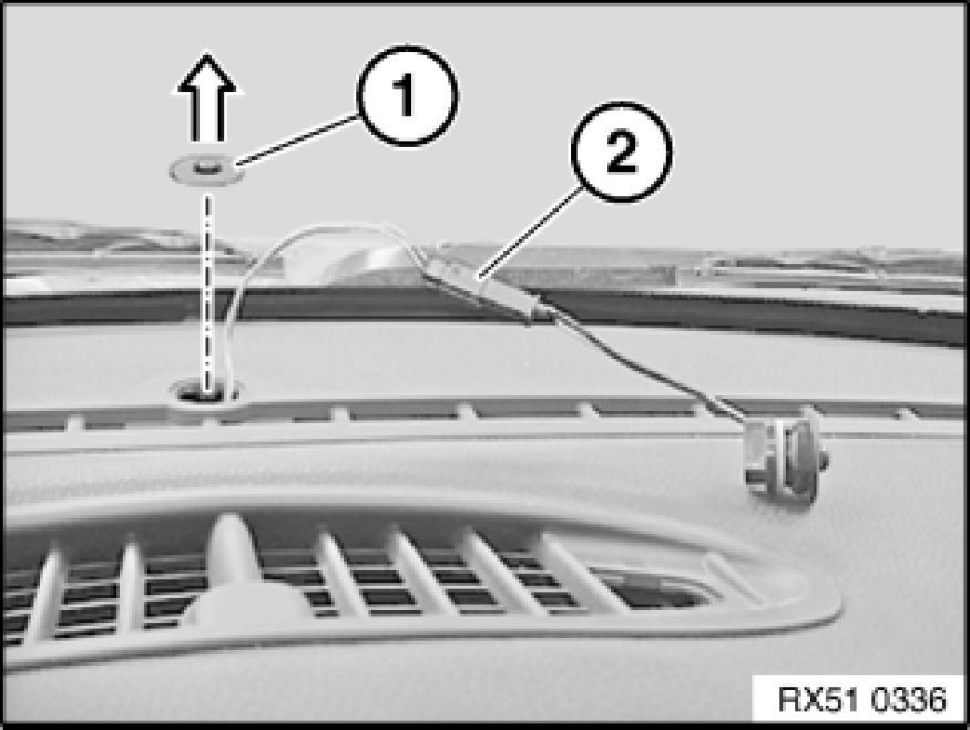 Firmly pull solar sensor (1) upwards to release binding (adhesive tape inside instrument panel).
