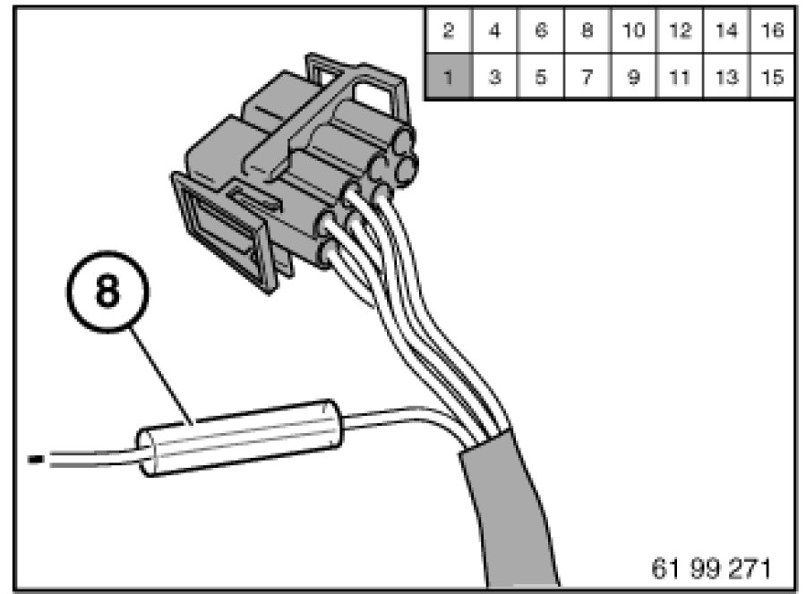 5. Make sure that no safety-related system according to connection scheme (e.g. anti-lock braking system, active rear-axle kinematics, airbags, etc.) are influenced. Otherwise replace faulty wiring harness or use repair cable (sourcing reference: BMW Parts Service)