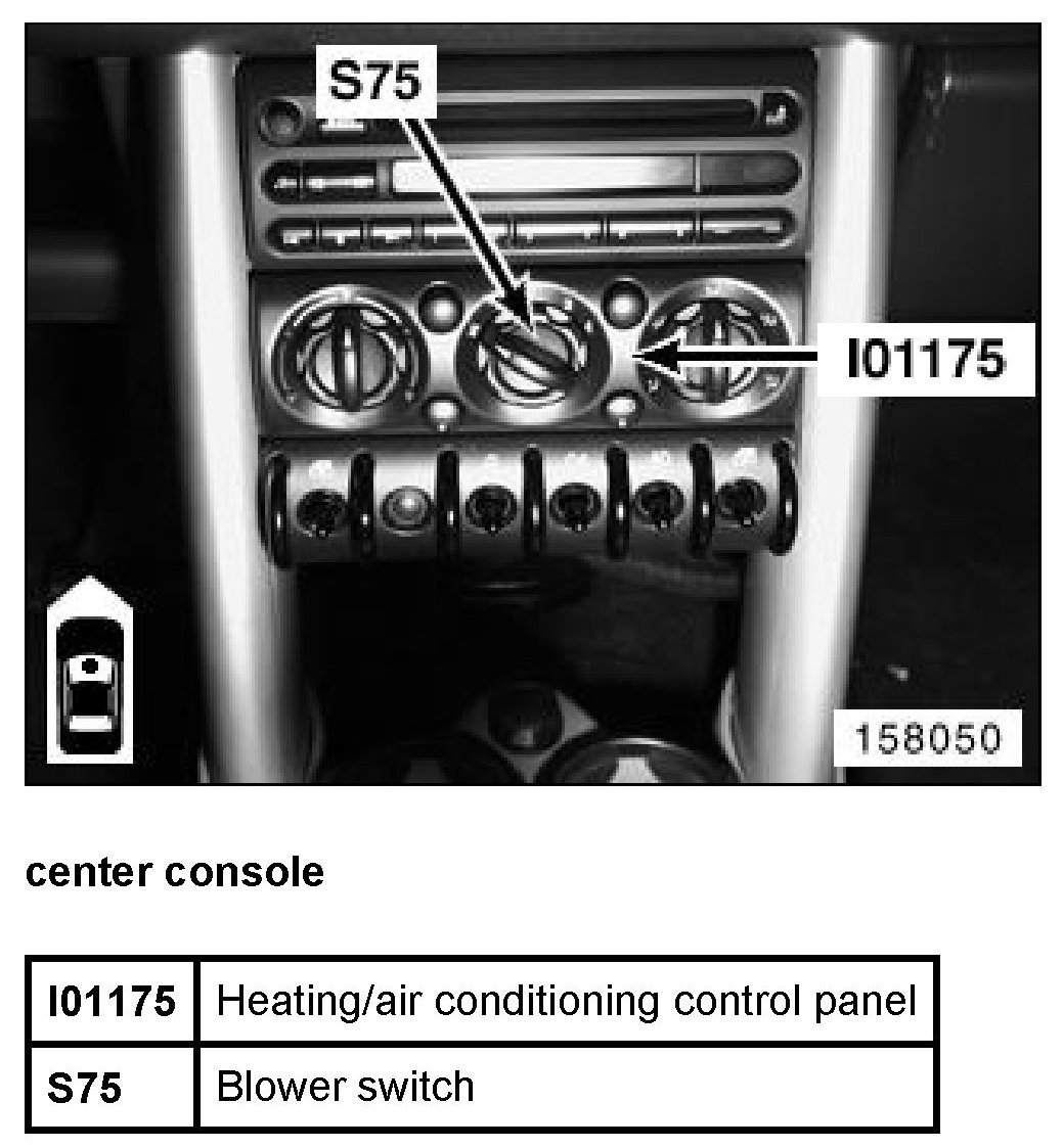 I01175 Control Panel, Heater and A/C Controls (Without IHKA Automatic Heating/Air Conditioning System)