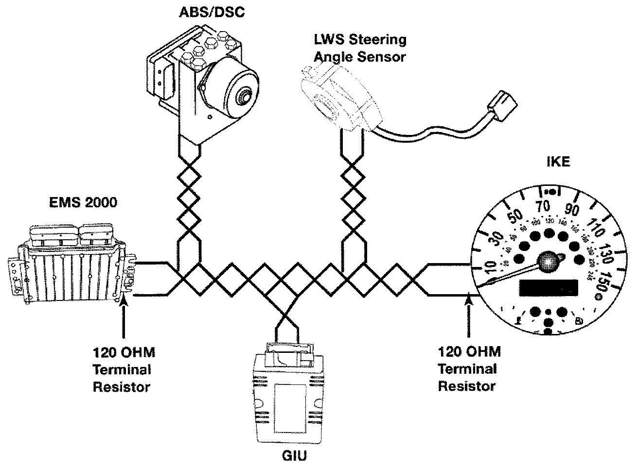 For correct operation CAN-Bus must be terminated at both ends (EMS2000 and IKE) with a control unit resistance of 120 ohms, connected between CAN-H and CAN-L. These terminations ensure that bit errors due to signal reflections are avoided.