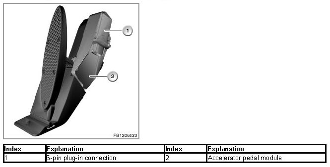 The accelerator pedal module detects the position of the accelerator pedal. The DME control unit uses this to calculate the required position of the throttle valve, taking account of other factors.