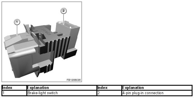 Two switches are built into the brake-light switch: the brake-light switch and the brake-light test switch (redundancy for safety reasons). The signals indicate to the DME control unit whether the brake pedal has been pressed.