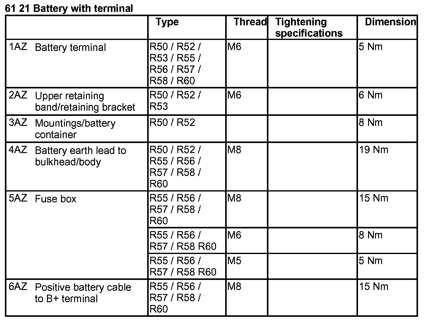 - When installing battery terminal: Tightening torque 61 21 1AZ.