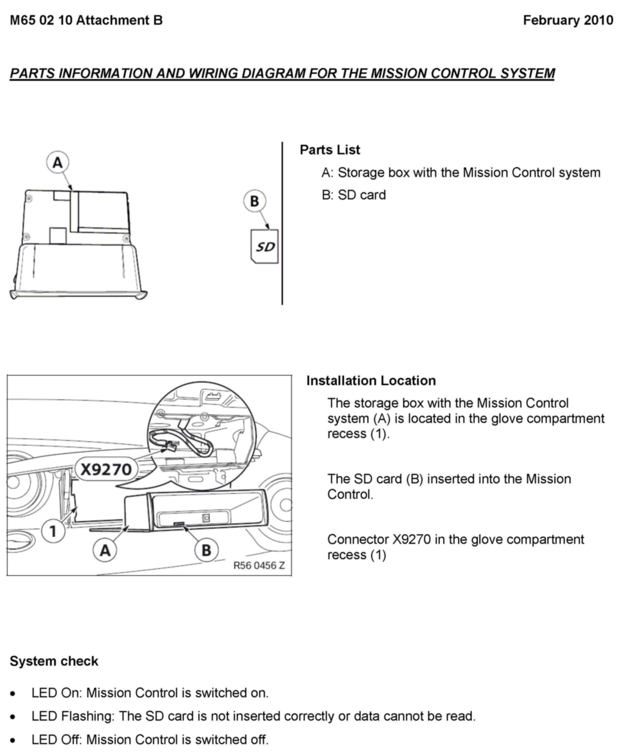 The Mission Control system cannot be diagnosed using the BMW Group diagnosis system. If the system is inoperative, check the following: