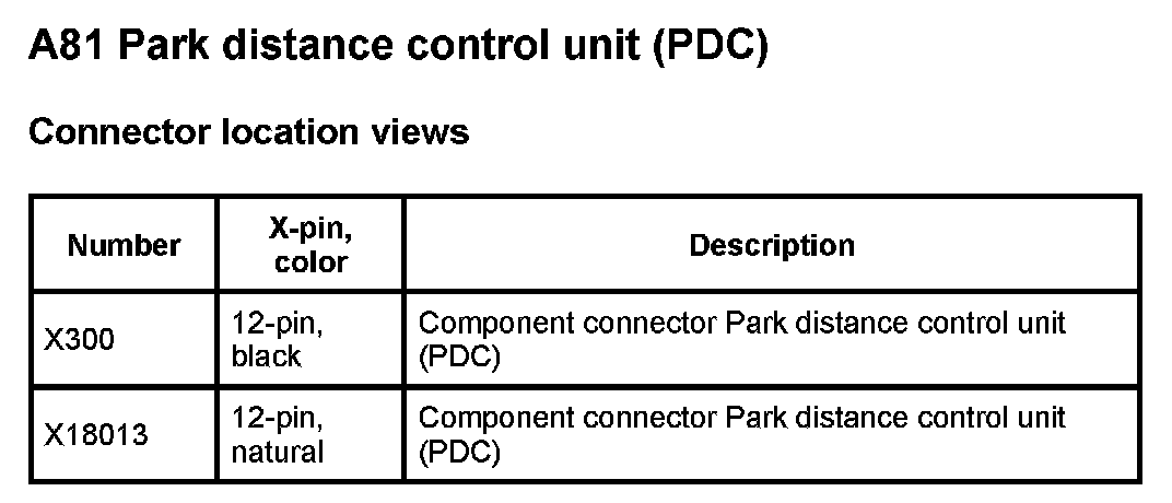 A81 Park Distance Control Unit (PDC):