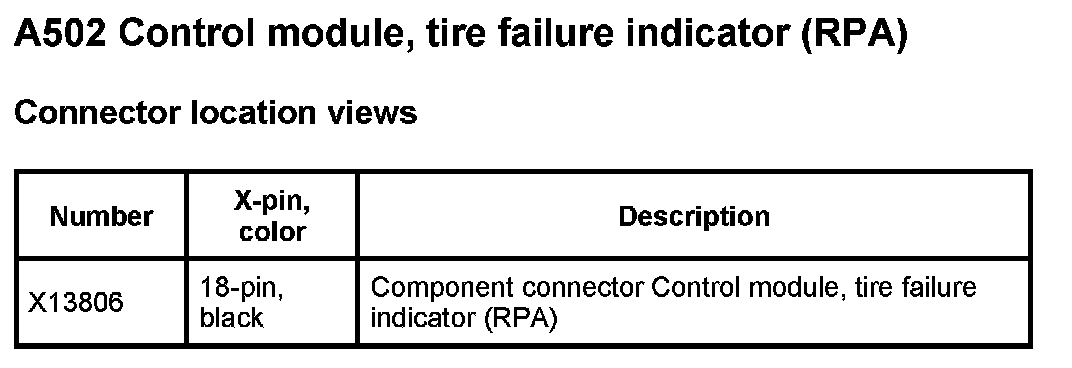 A502 Control Module, Tire Failure Indicator (RPA):