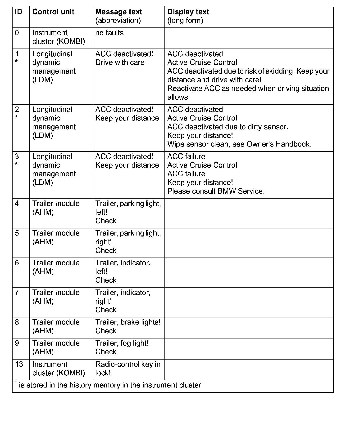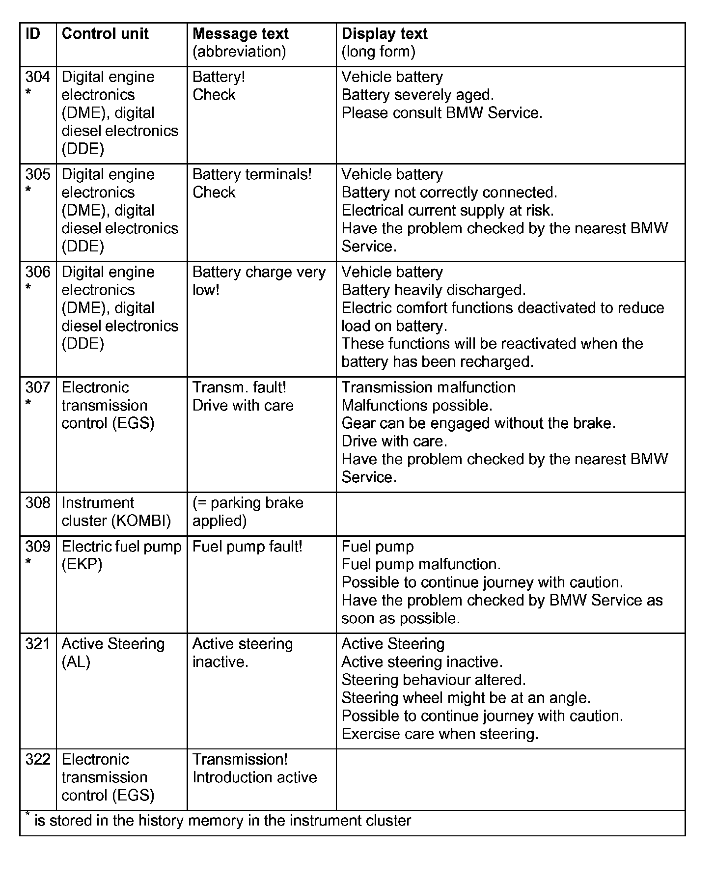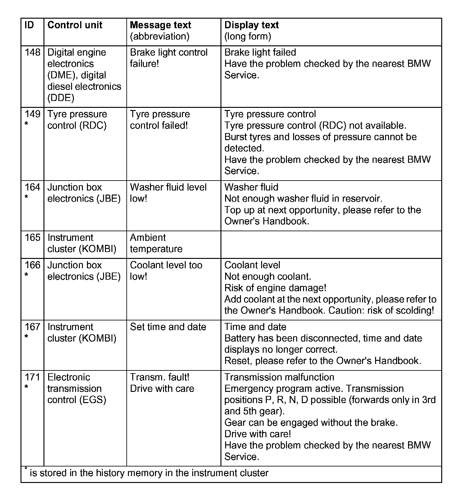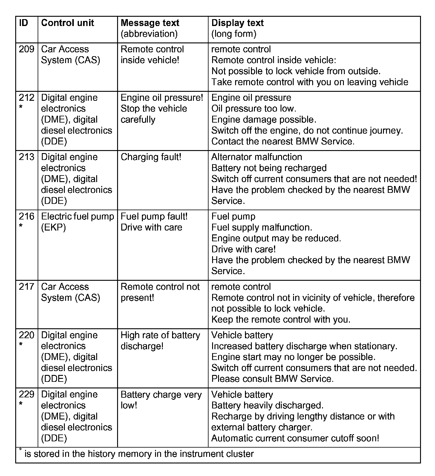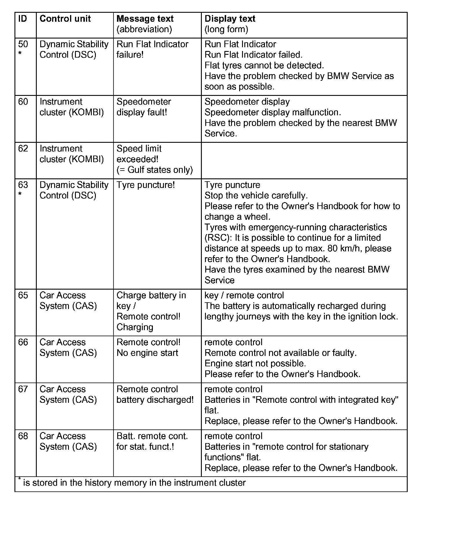 In situations where the customer complains of a check control (CC) message, but the message is currently not displayed, the last (72) CC messages are stored in the instrument cluster and can be viewed using DIS V49.0, or later. (Note: Only important messages are stored. Messages concerning e.g. door open, are not stored.)