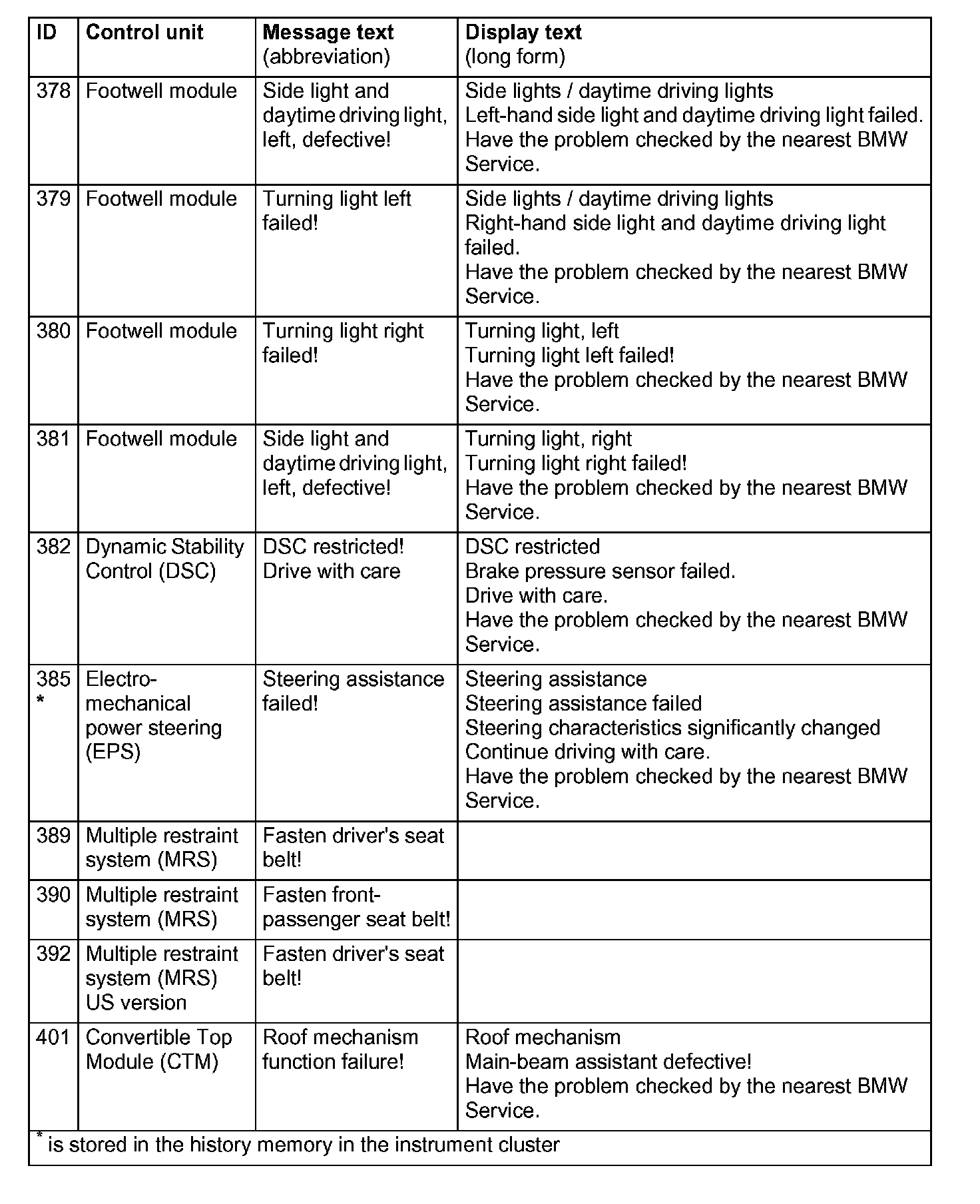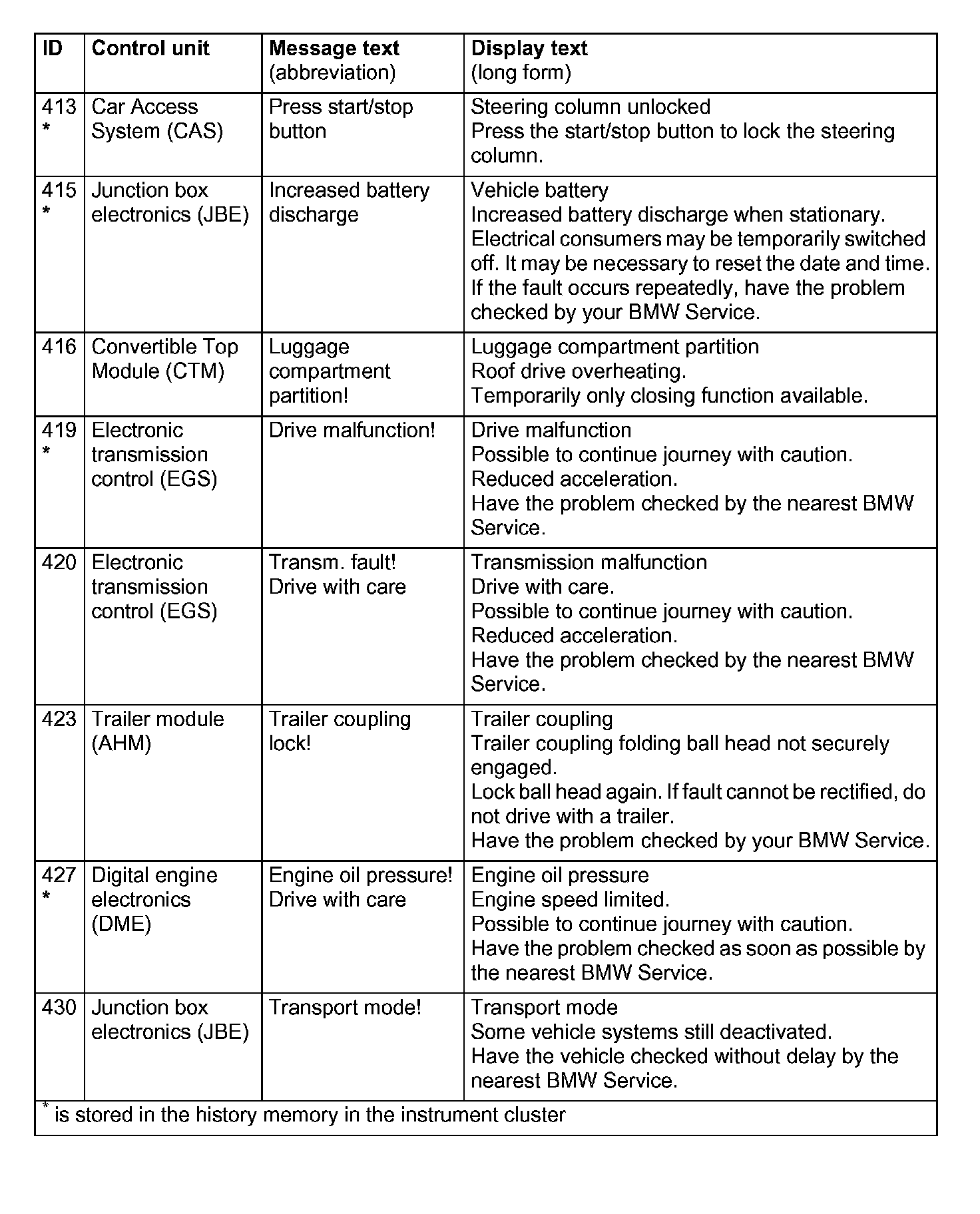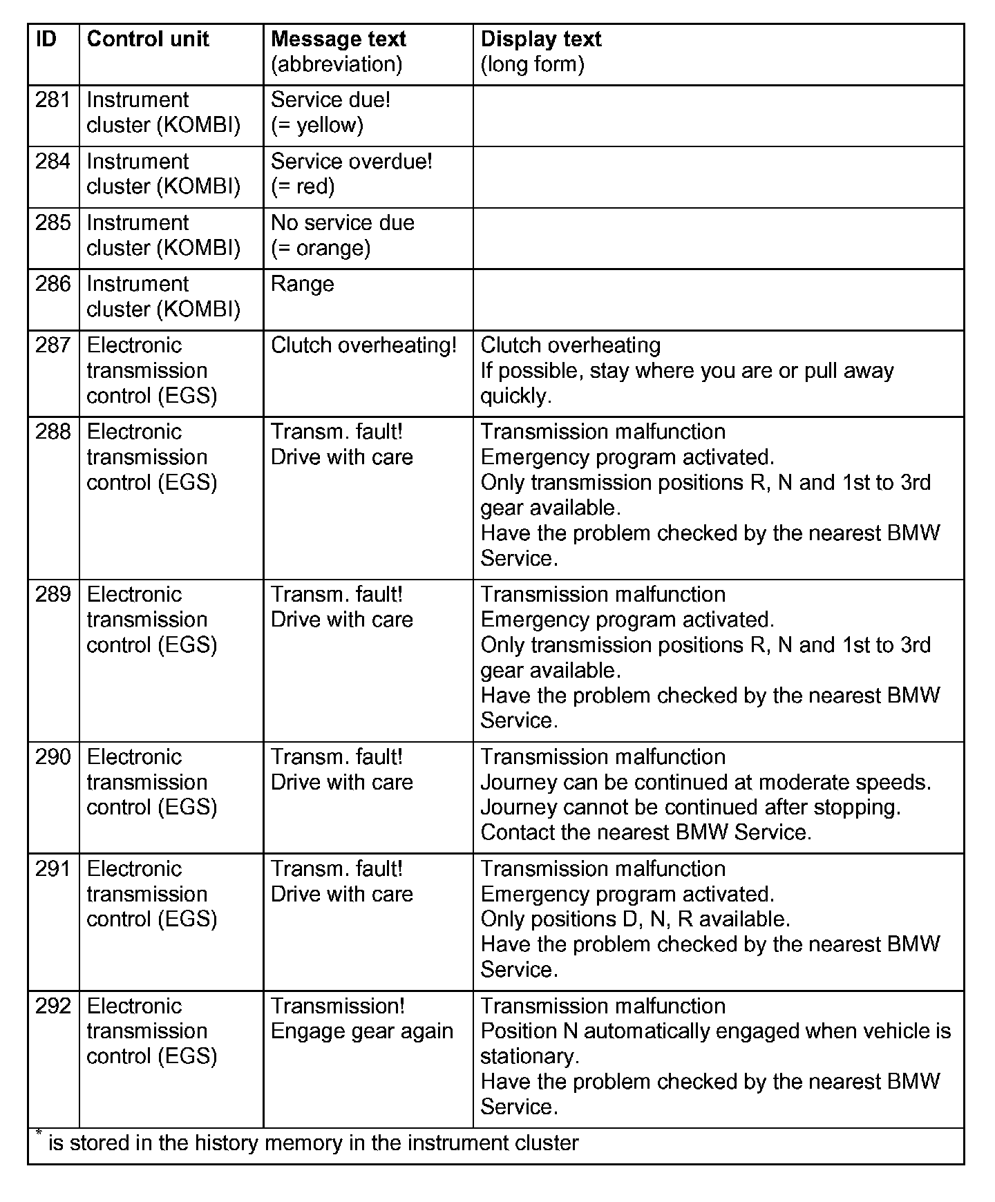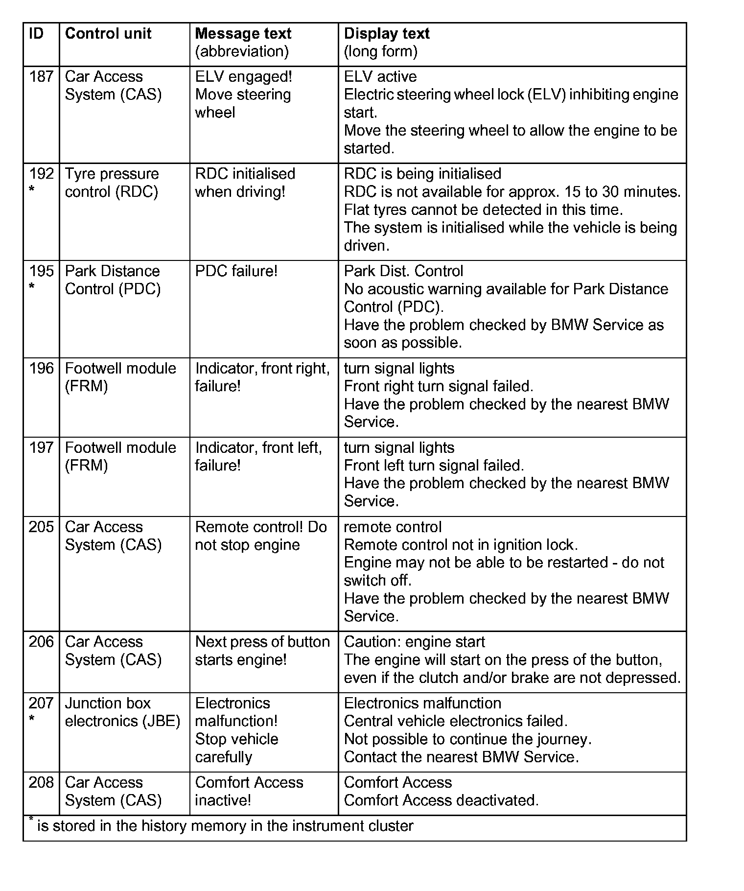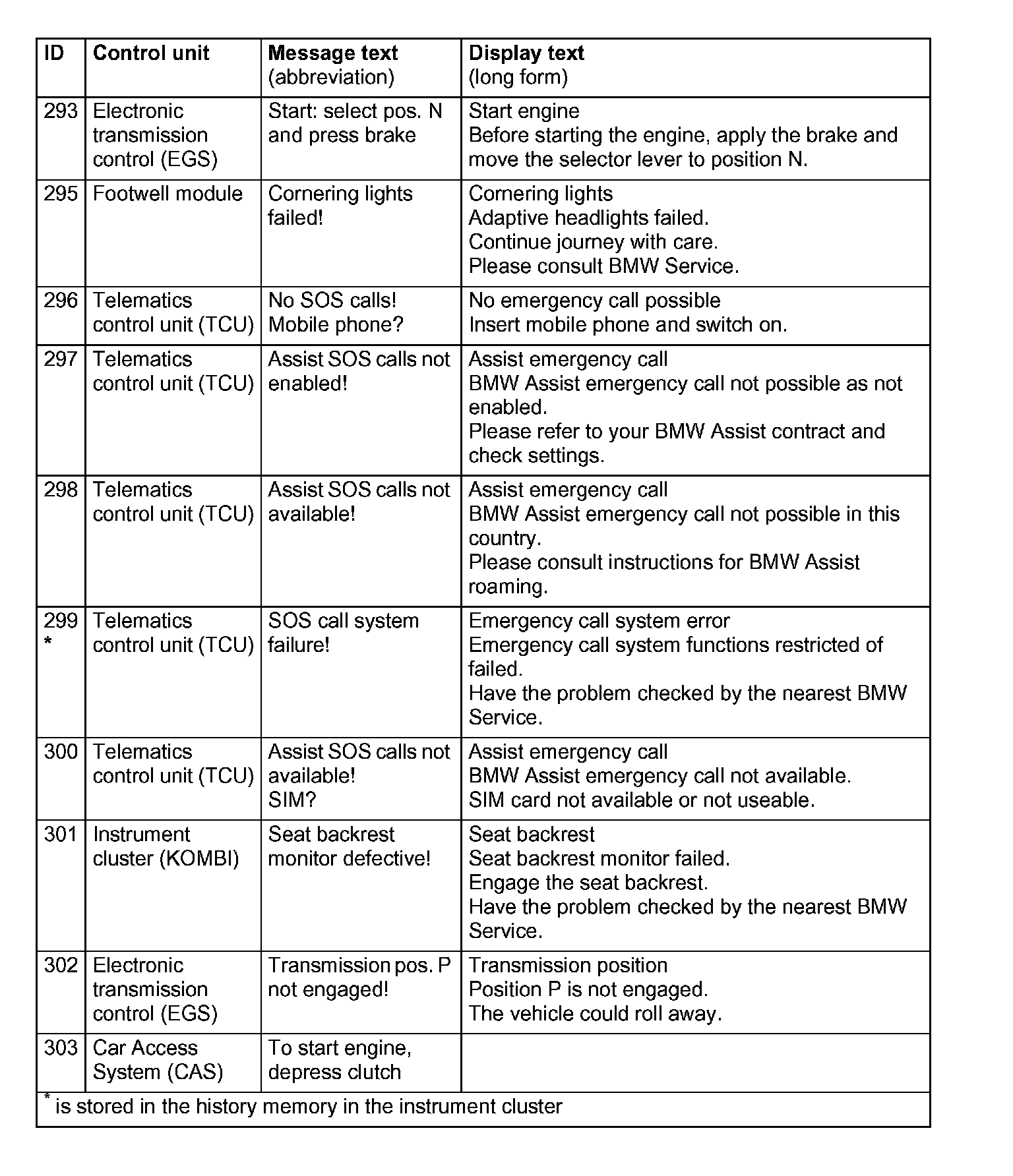 In situations where the customer complains of a check control (CC) message, but the message is currently not displayed, the last (72) CC messages are stored in the instrument cluster and can be viewed using DIS V49.0, or later. (Note: Only important messages are stored. Messages concerning e.g. door open, are not stored.)
