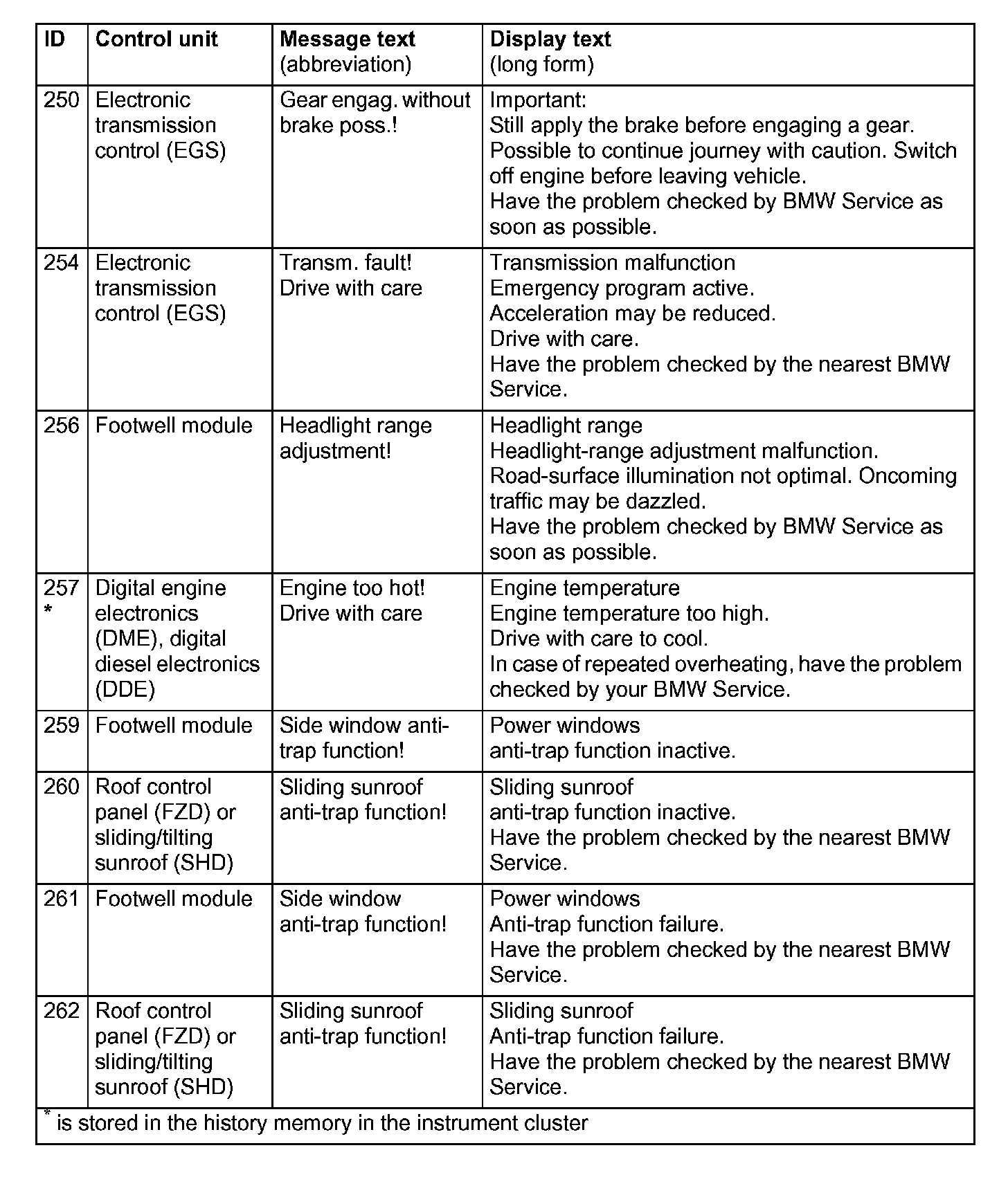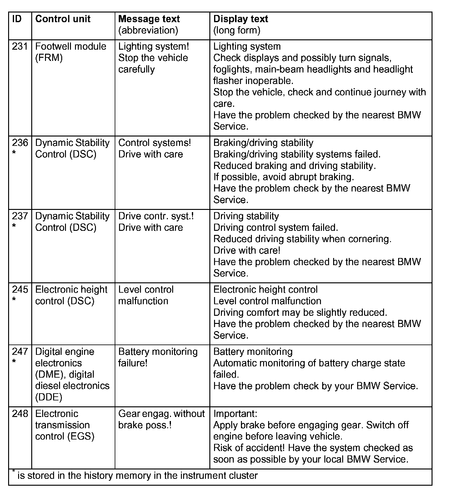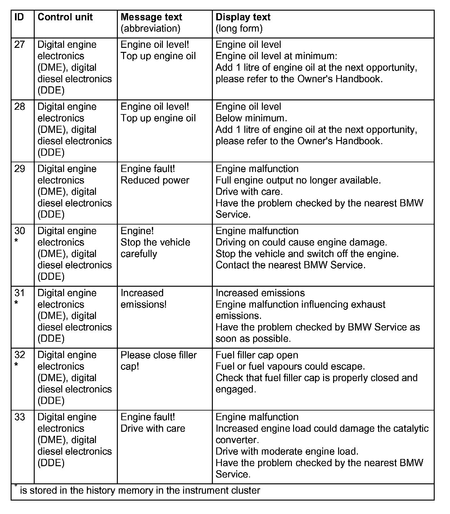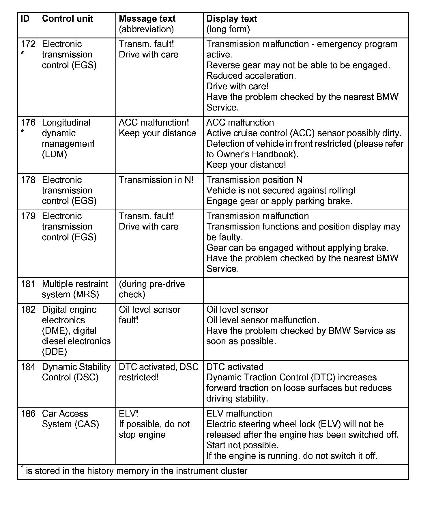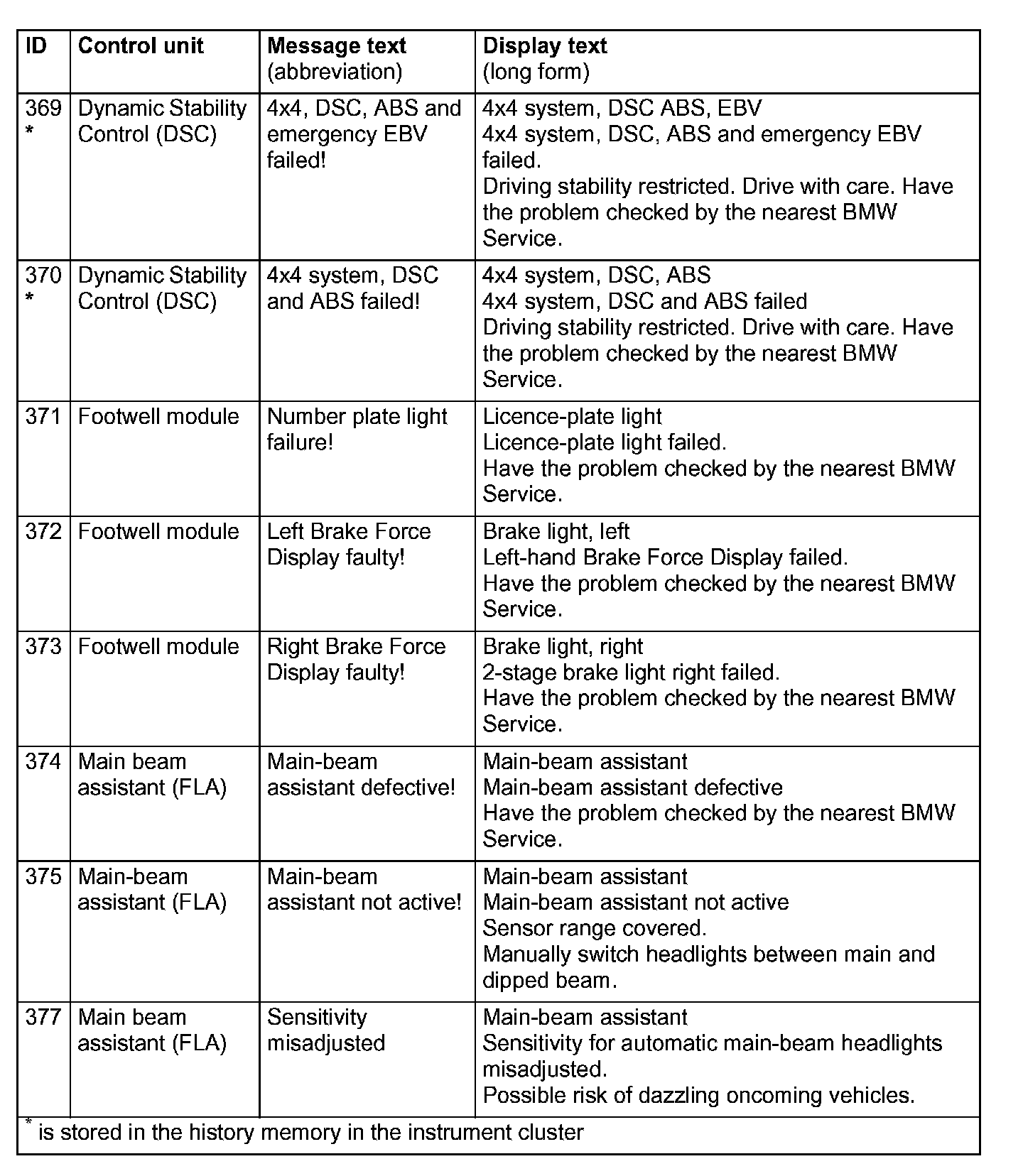 In situations where the customer complains of a check control (CC) message, but the message is currently not displayed, the last (72) CC messages are stored in the instrument cluster and can be viewed using DIS V49.0, or later. (Note: Only important messages are stored. Messages concerning e.g. door open, are not stored.)